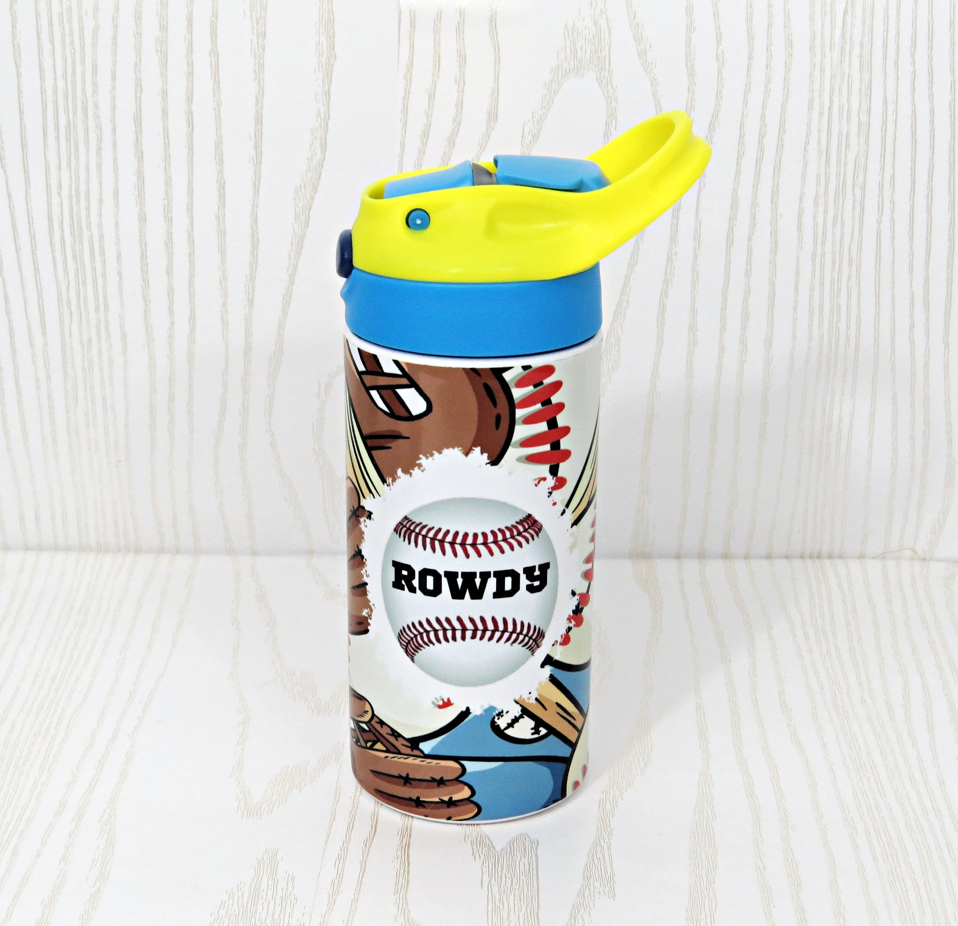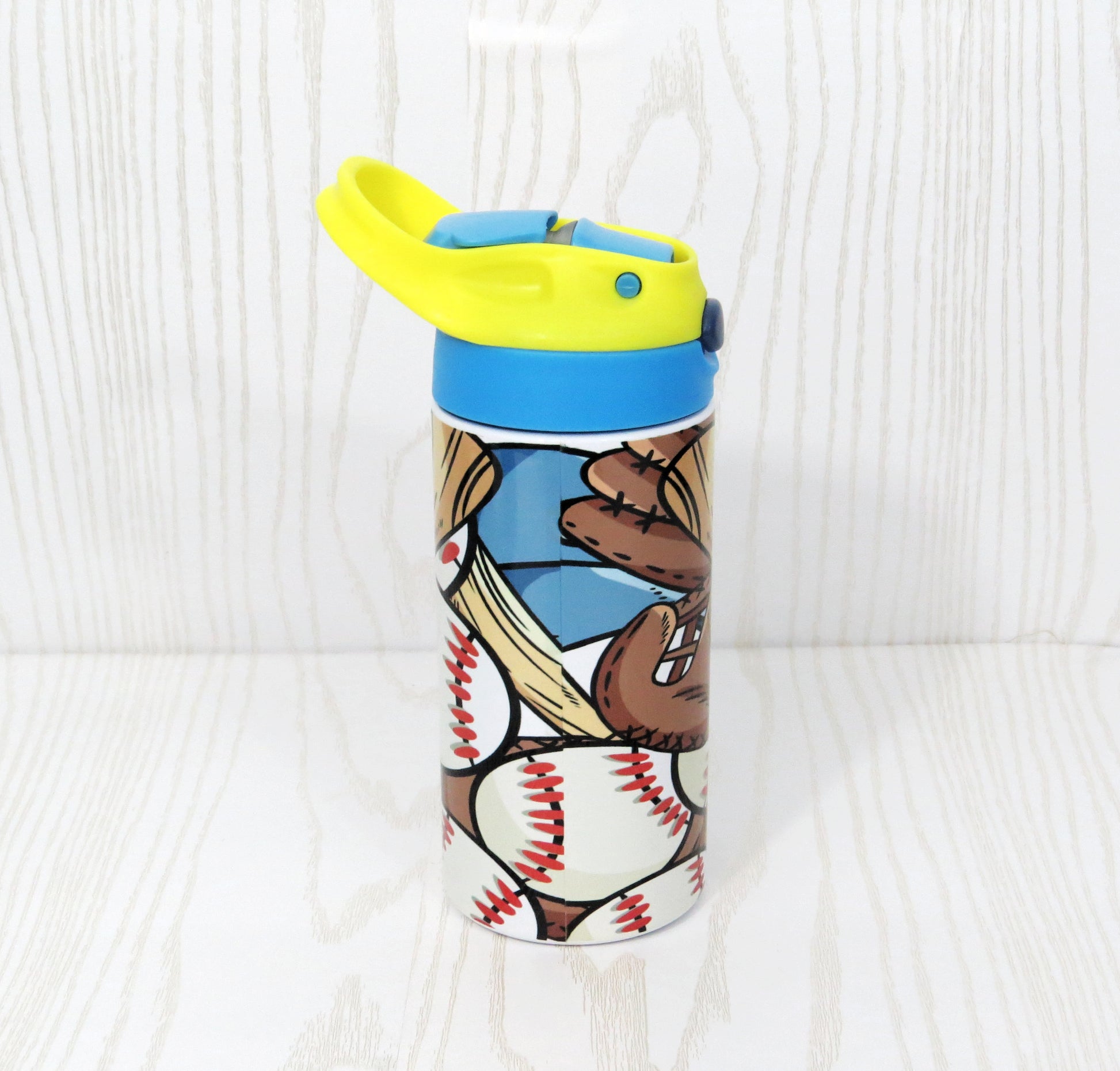 12 oz Stainless Steel Baseball Tumbler - Boys Water Bottle - Flip Top - Insulated Reusable - Straw - Personalized Custom with Handle