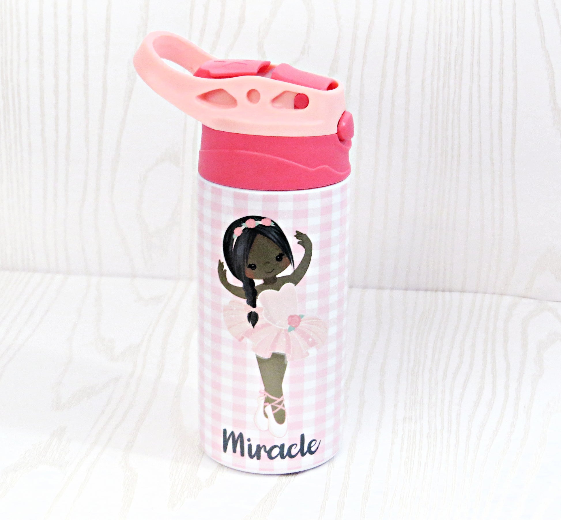 12 oz Stainless Steel Girls Ballerina Dance Tumbler - Toddler Water Bottle - Flip Top - Insulated Reusable - Straw - Personalized Custom with Handle