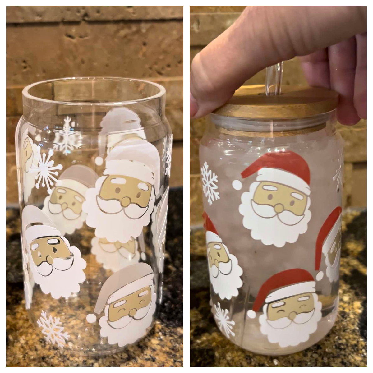 16 oz Color Changing Christmas Santa Glass Cup with Bamboo Lid - Pint Beer Glass - Color Changing Vinyl Cup - Gift