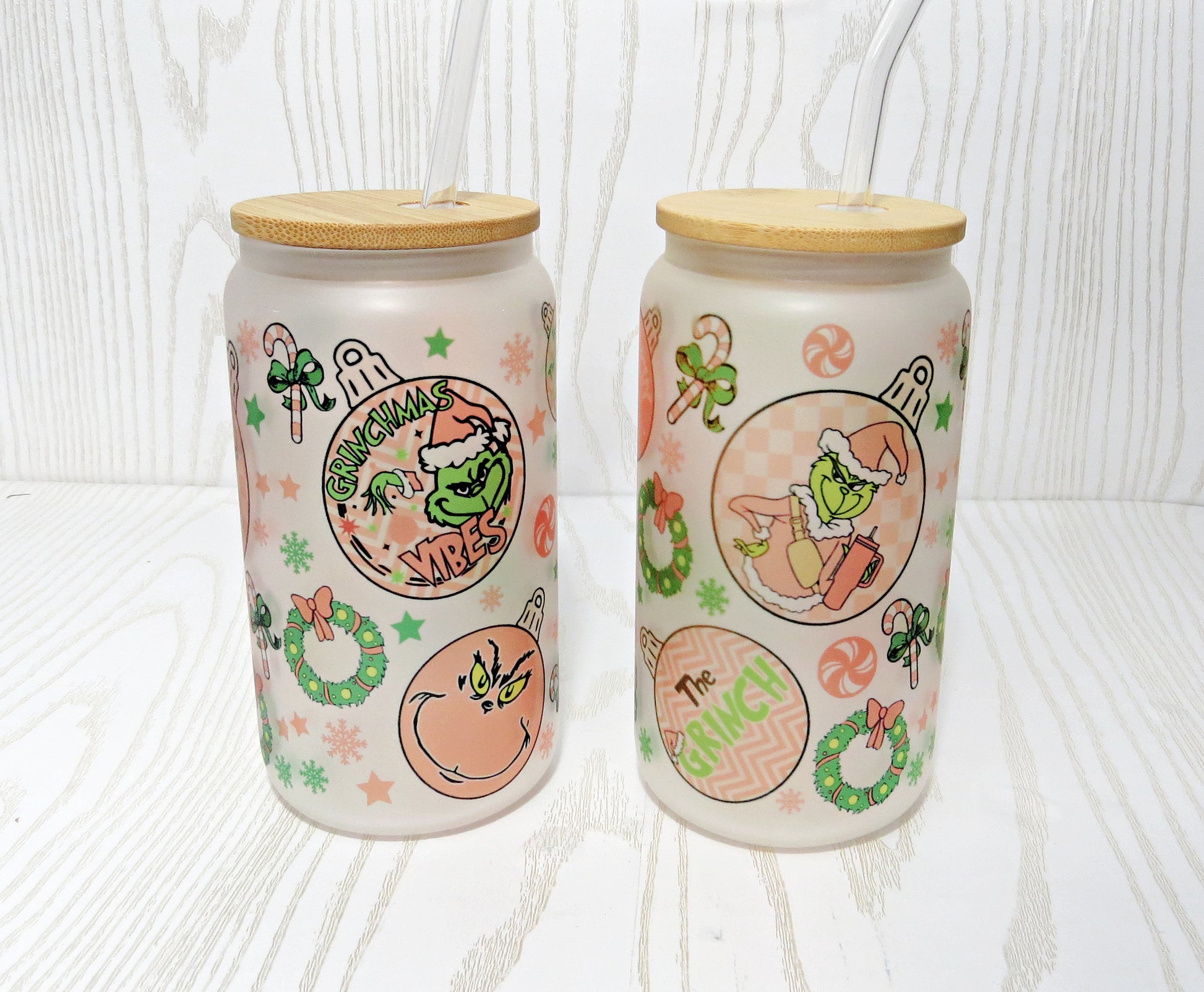 These 16 oz Grinch Glass cups are the cutest! Perfect addition to those holiday festivities!