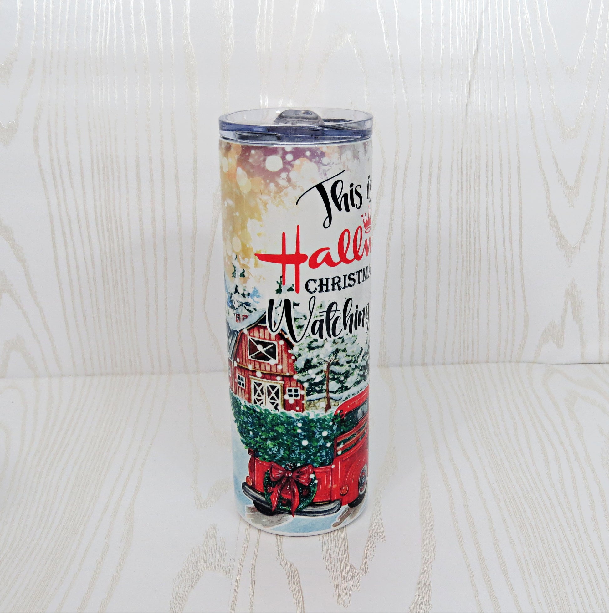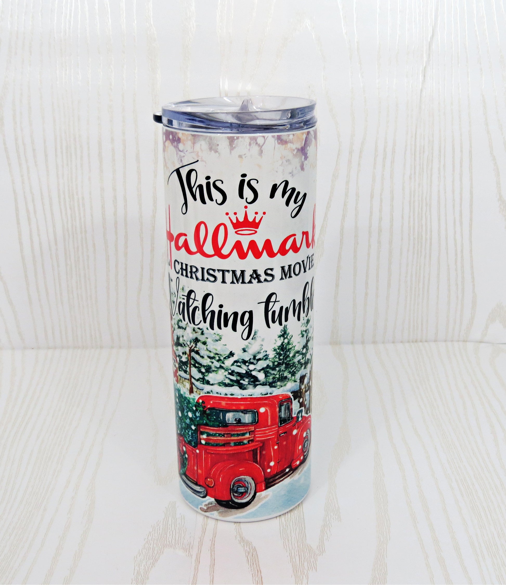 20 oz Christmas Movie Watching Stainless Steel Skinny Tumbler - Includes Straw and Lid – Holiday Gift Secret Santa