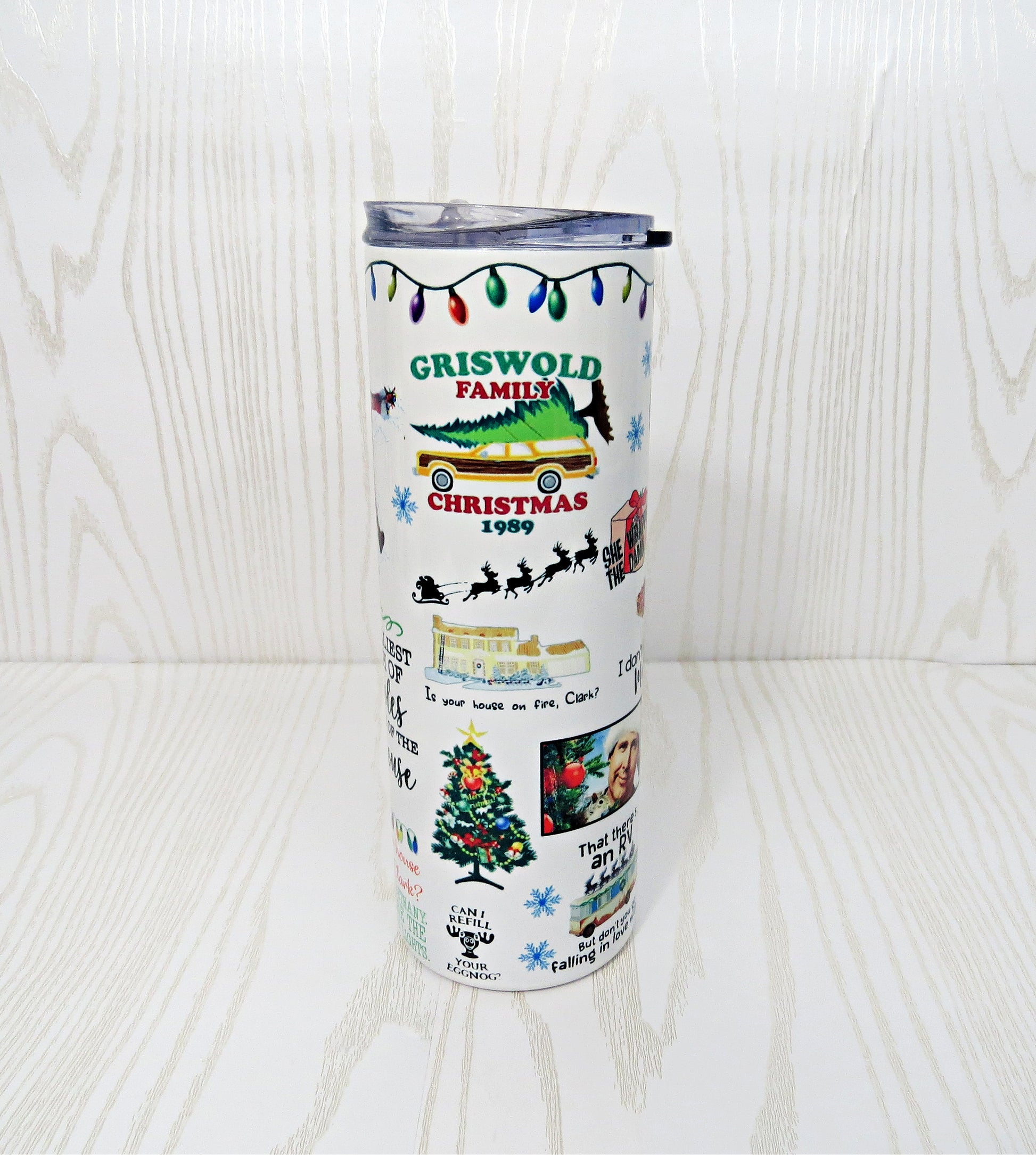 20 oz Christmas Vacation Stainless Steel Skinny Tumbler - Griswolds - Includes Straw and Lid – Holiday Gift Secret Santa