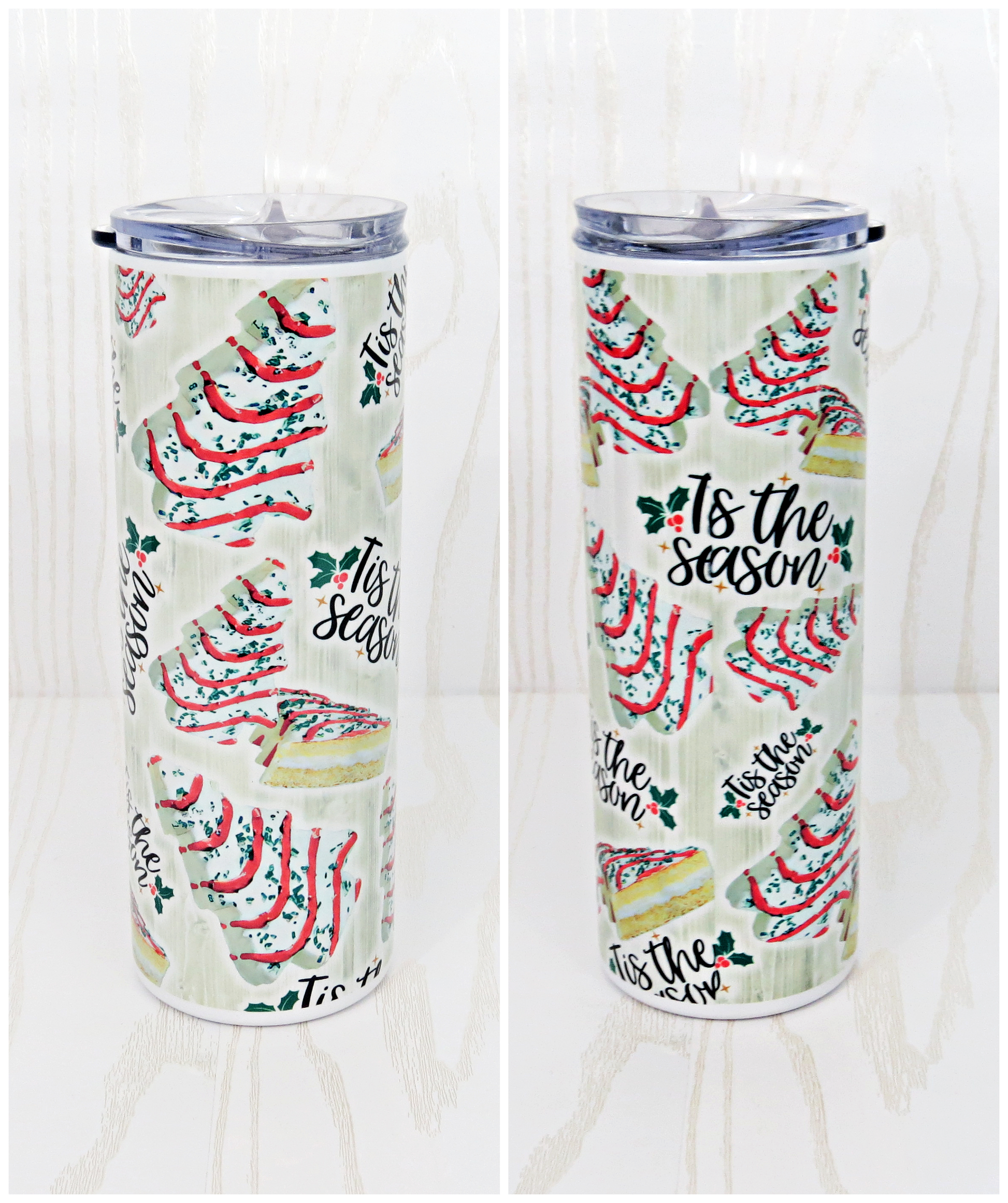 20 oz Snack Cake Christmas Stainless Steel Skinny Tumbler - Includes Straw and Lid – Holiday Gift Secret Santa - Birthday