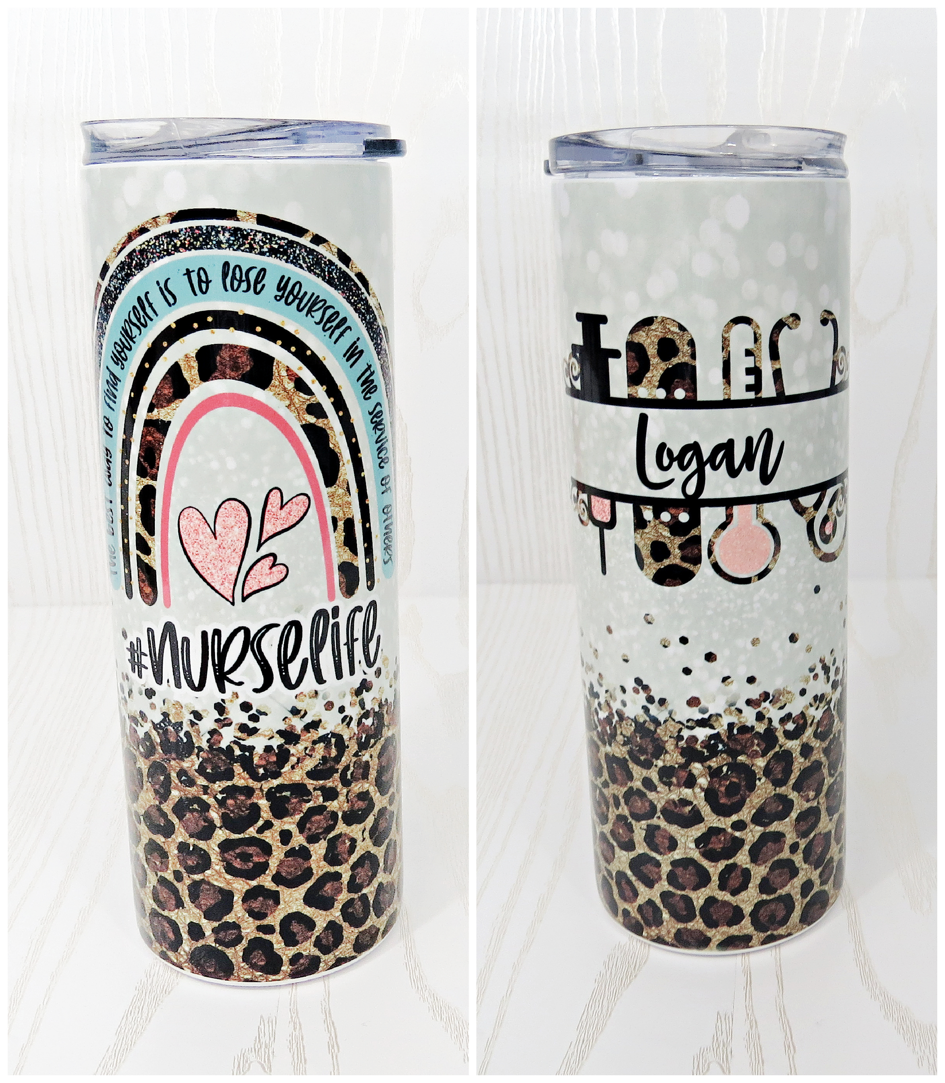 20 oz Stainless Steel Skinny Tumbler Personalized Name- Nurse Week Gift - Appreciation Gift – Personalized Nurse - Nurse Tumbler with Straw - Nurse Week Gifts for Women Men – Custom