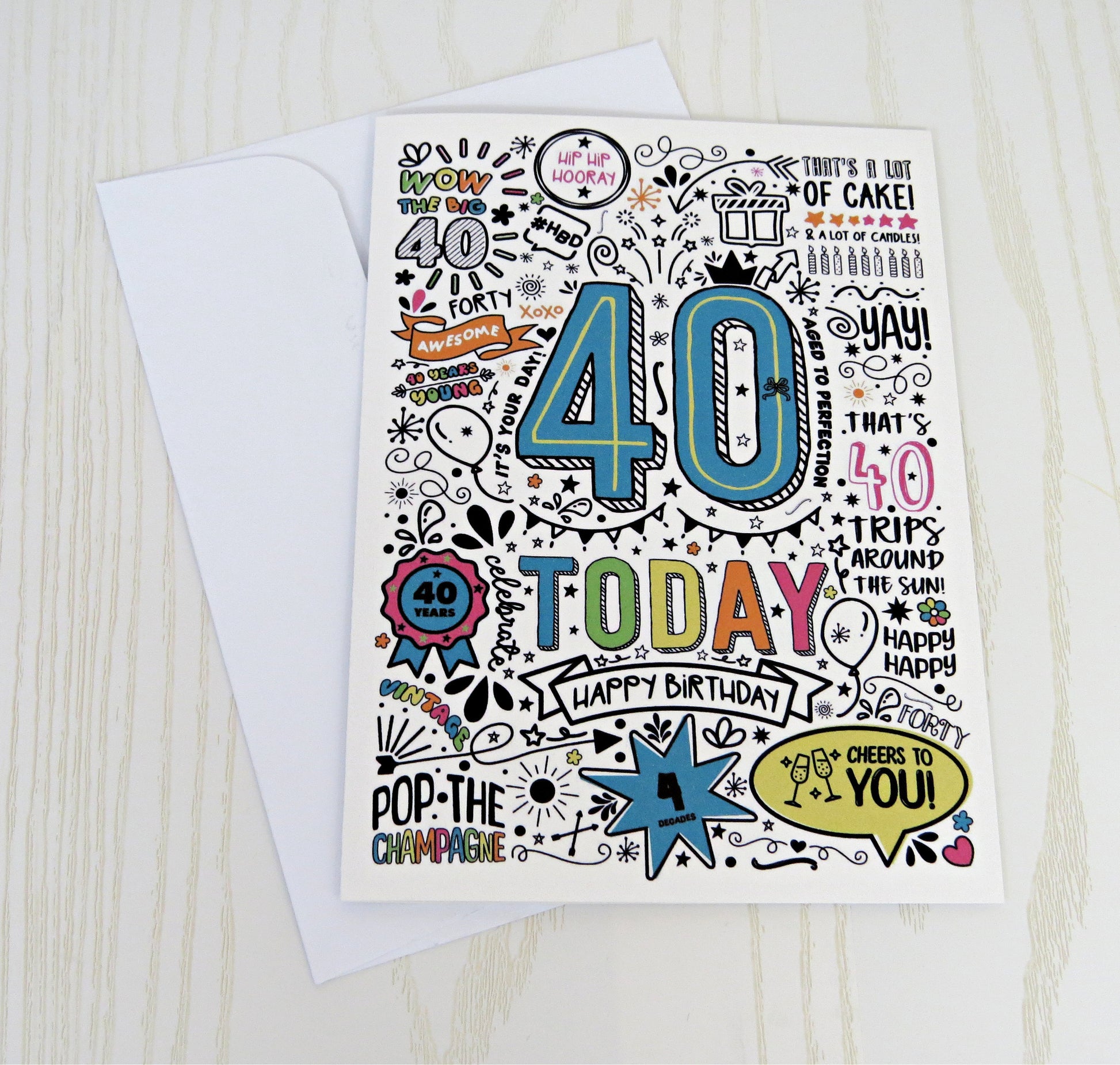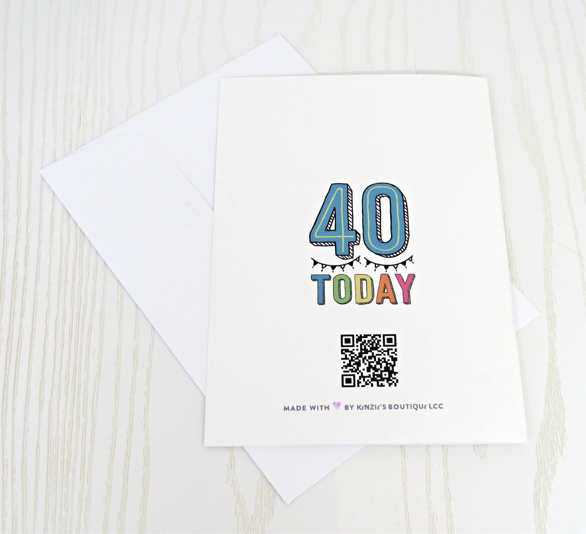 40th Birthday Card - Forty Card Celebration - Unique Gift Card Holder - Folded Card for Him, Her, Girl Boy