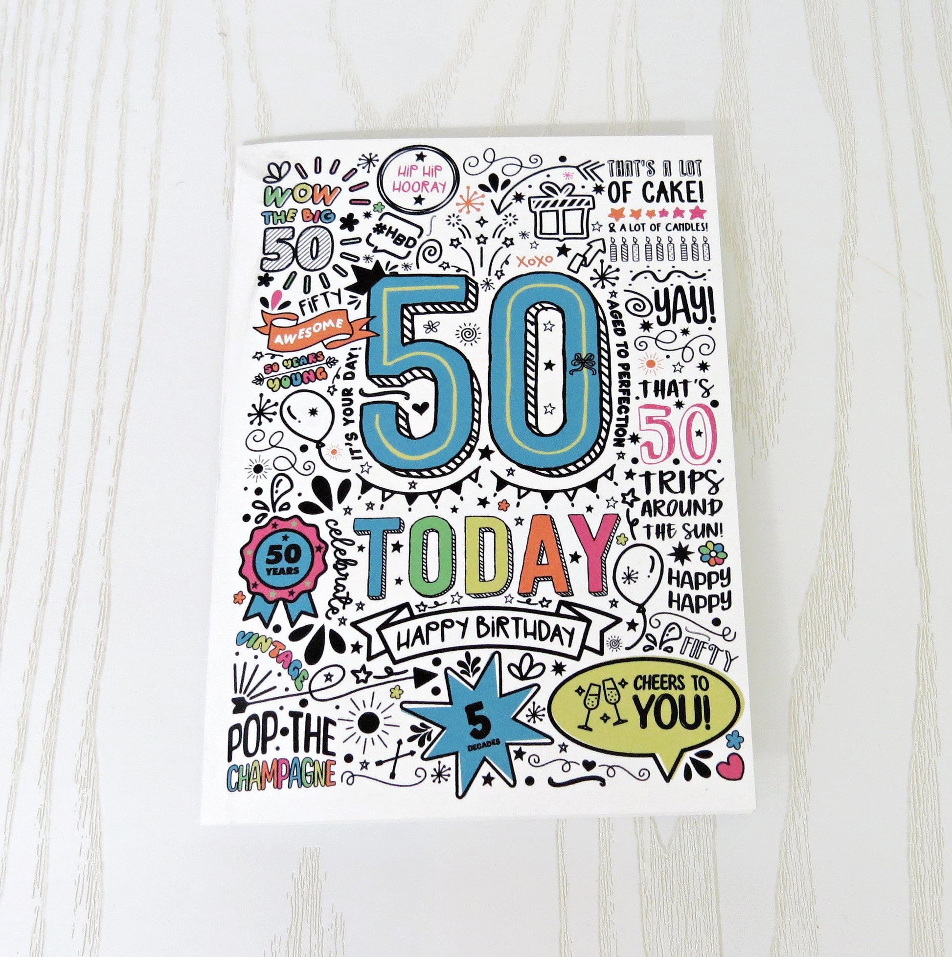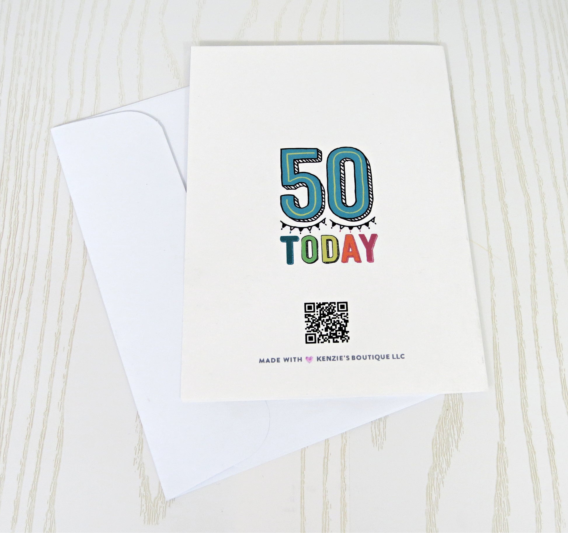 50th Birthday Card - Fifty Card Celebration - Unique Gift Card Holder - Folded Card for Him, Her, Women, Men, Grandma, Grandpa
