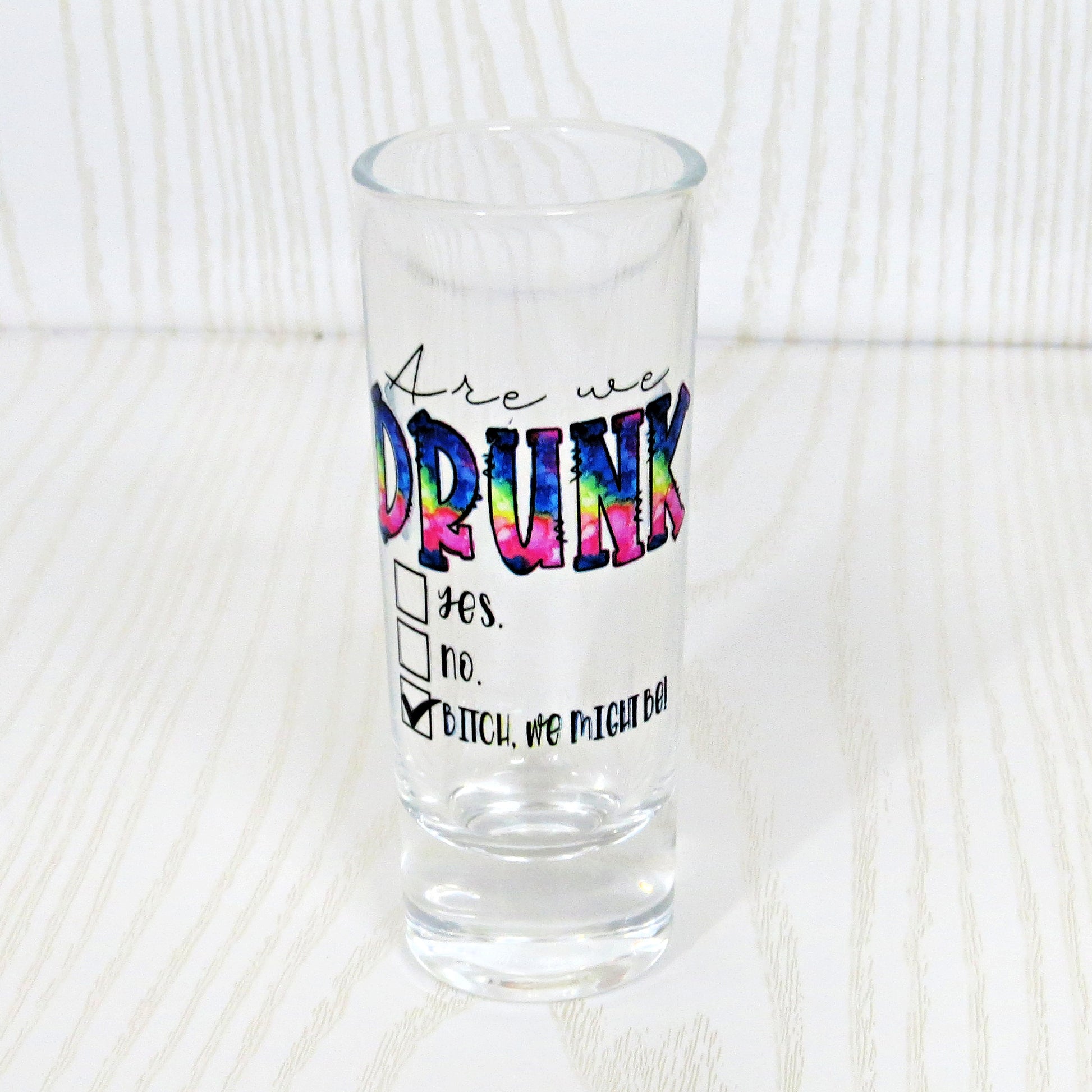 - This Handmade "Are We Drunk, B*tch We Might Be" 2 oz Shot Glass is the perfect gift for any drinker! With a vibrant design, this fun shot glass is ideal for birthday, holidays and so much more!