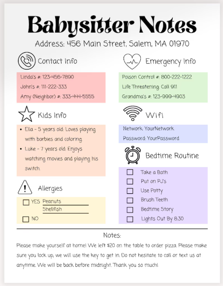 These Babysitter Notepads are a great gift for anyone!!! These are great to put your mind at ease knowing your babysitter has all the info they need!