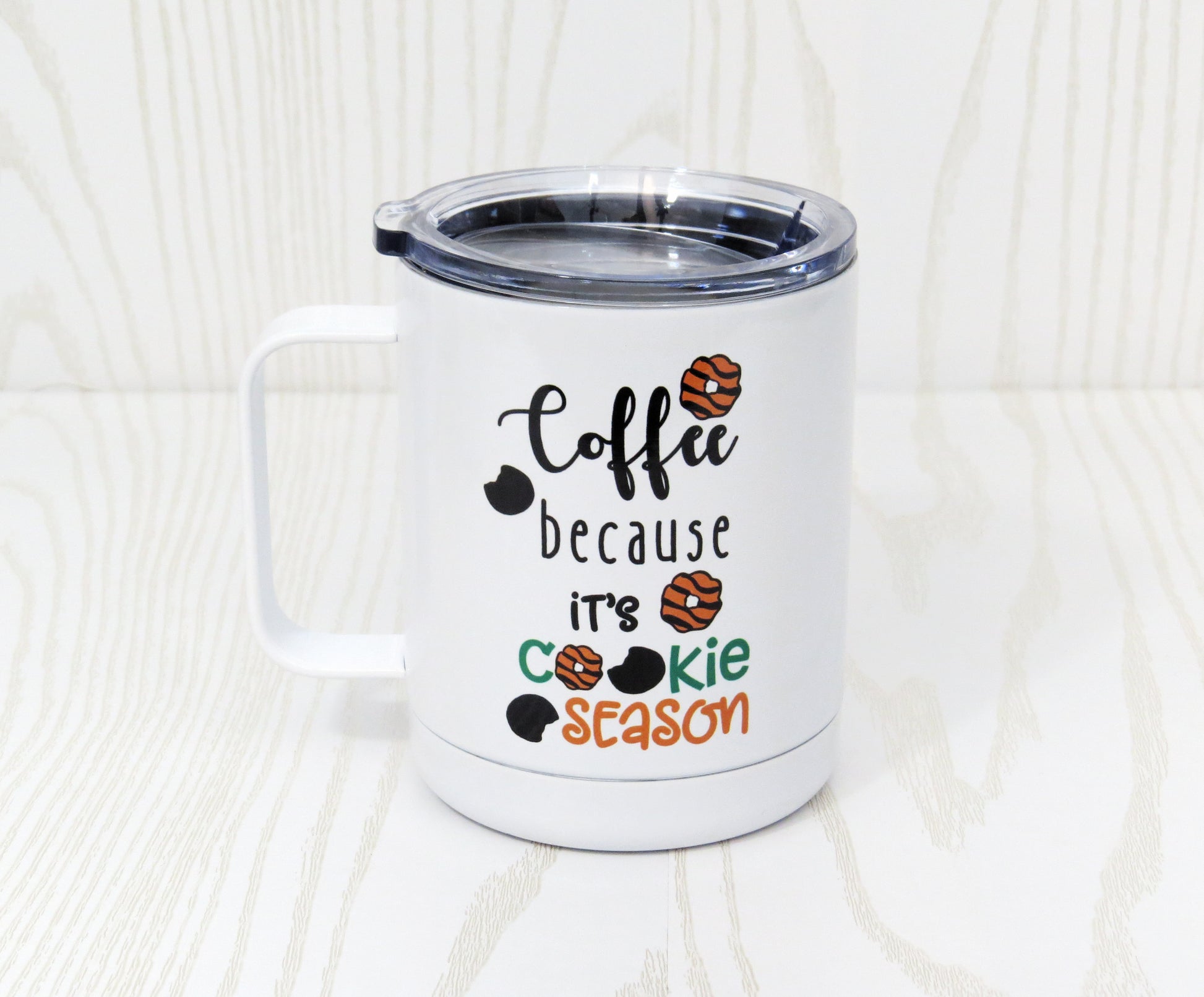 These Coffee because it's Cookie Season Girl Scout Coffee Mugs are the perfect gift for those Girl Scout Cookie Lovers!!!! Perfect for Birthdays, Cookie Selling Season, or just a thoughtful gift for that special person!