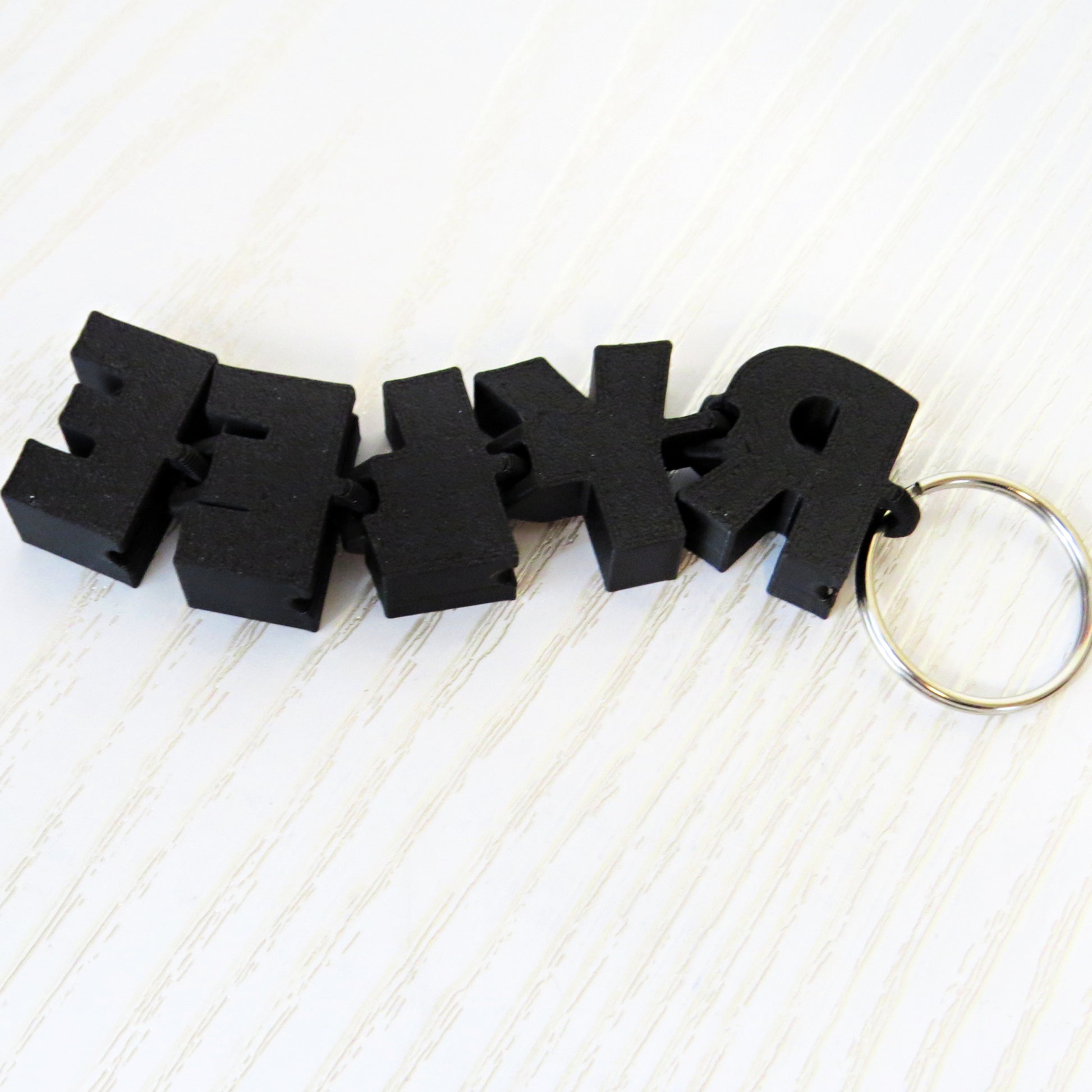 Bring your name to life with this Custom 3D Articulated Name Keychain — a fun, flexible keychain that moves and bends with every letter! Made from lightweight yet durable PLA plastic, each one is 3D printed to order with your chosen name and color. Perfect for backpacks, keyrings, sports bags, or gifts for teachers and friends.