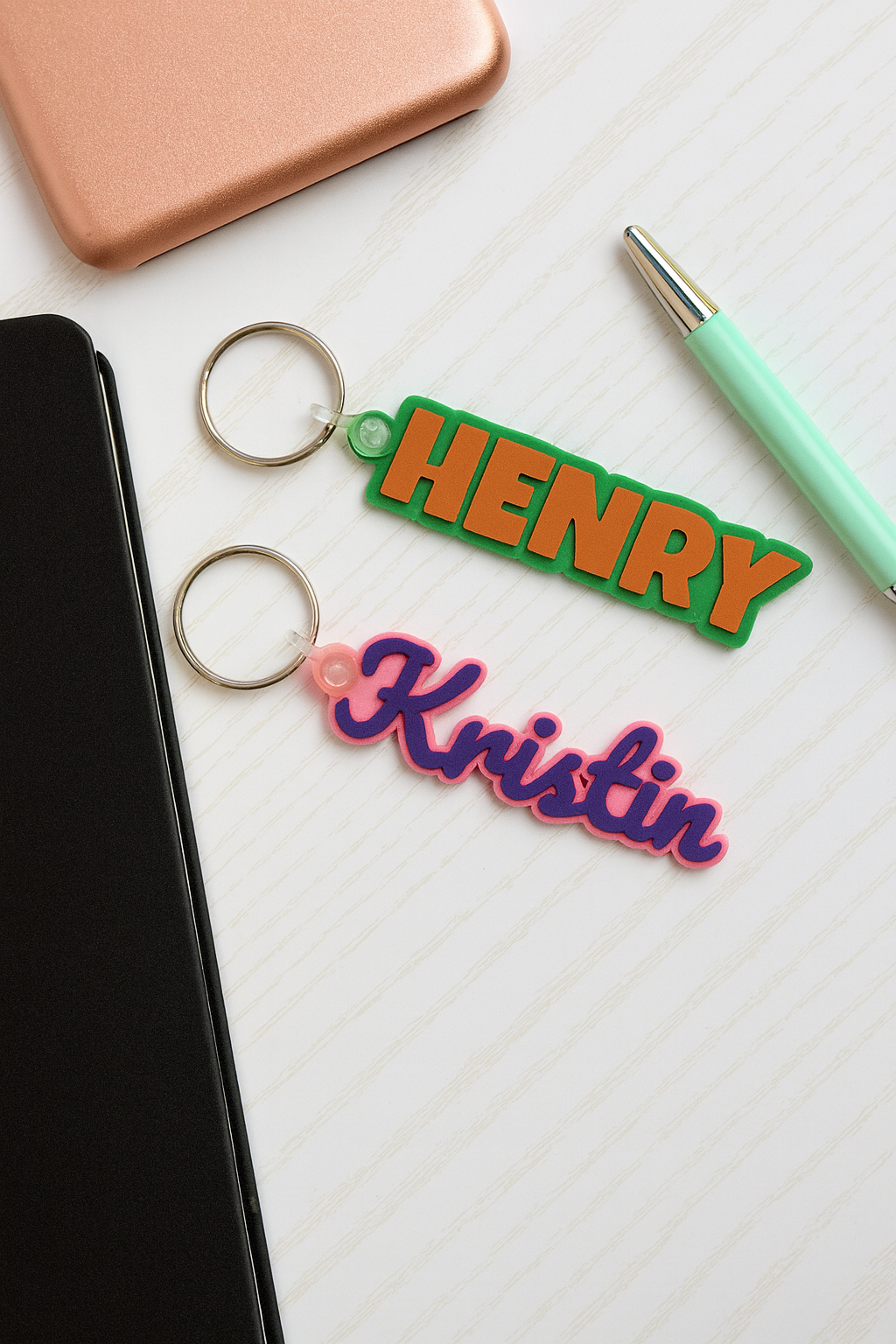 Create your own Personalized 3D Name Keychain – the perfect way to add a pop of color and personality to your everyday items!