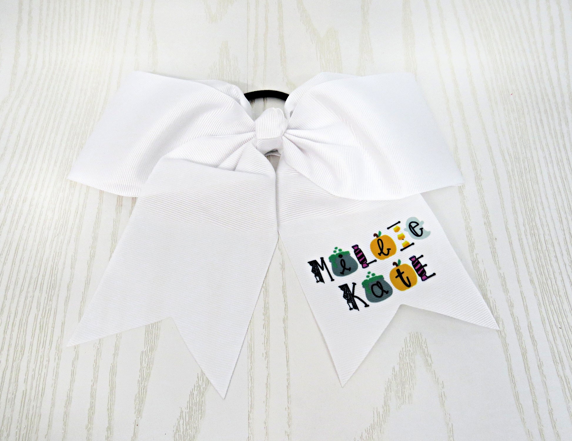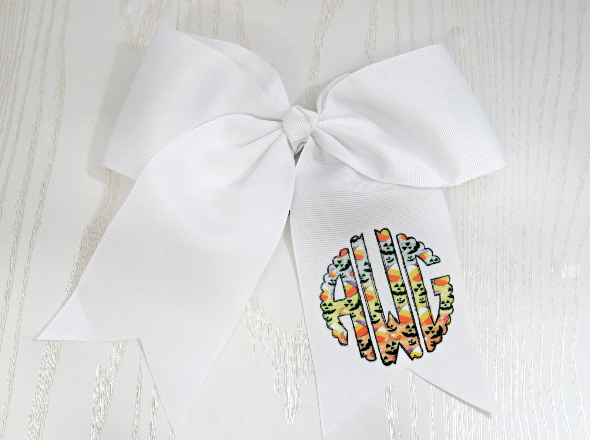 These 8 Inch Personalized Hairbows are a necessity for this Spooky Season! Great for Dress Up, Holidays, Pictures, Gift Giving and so much more! Your choice of either a Monogram or Name on the bows!
