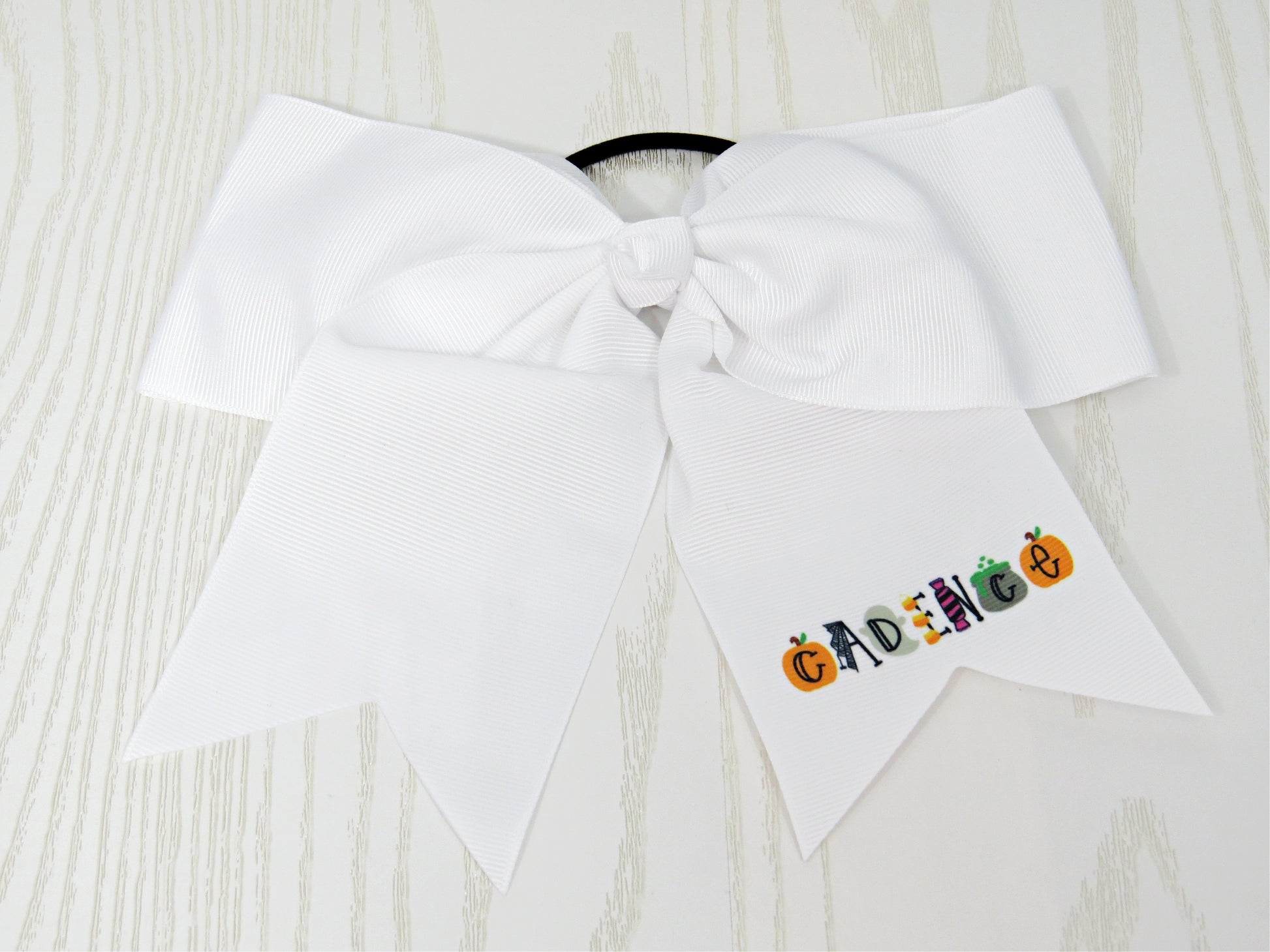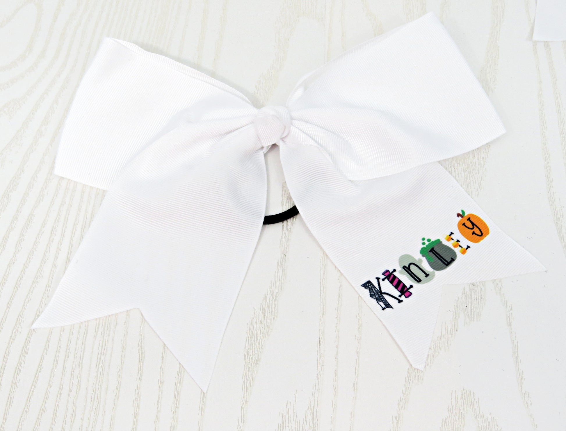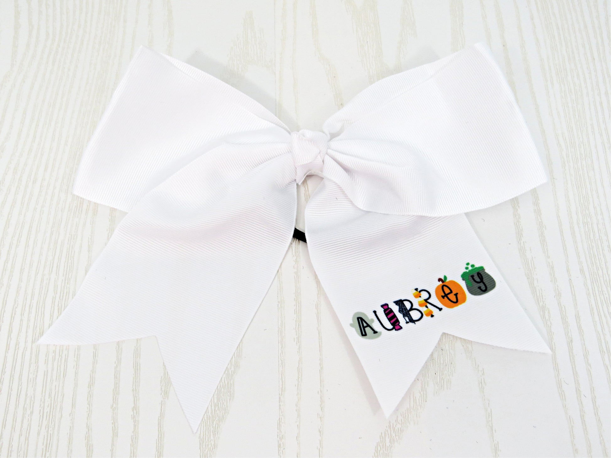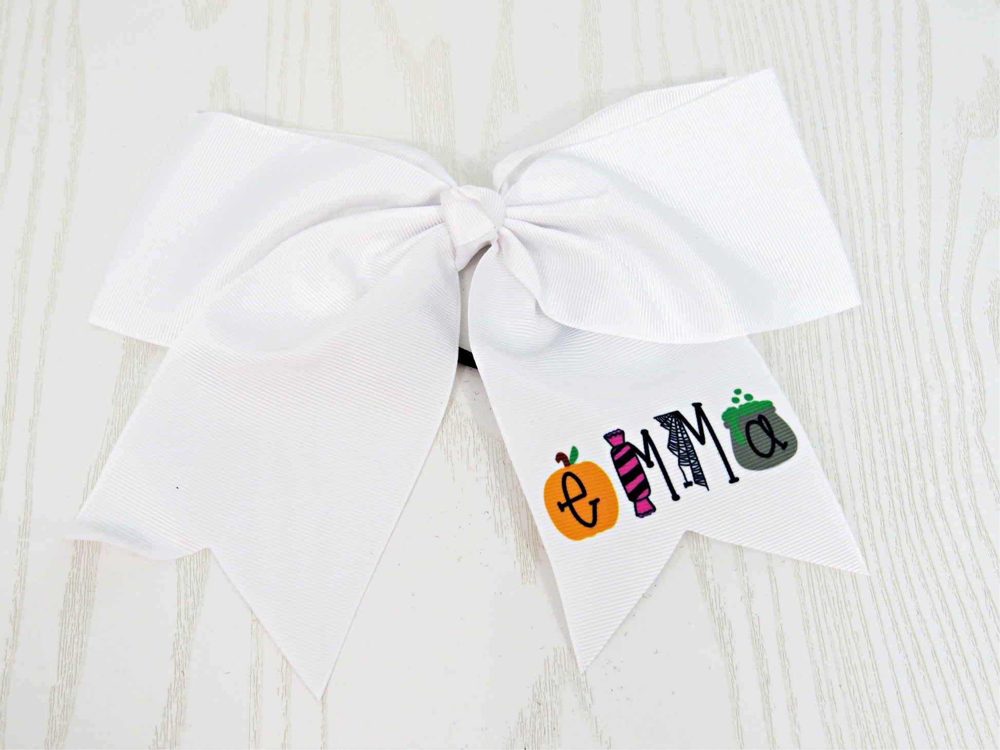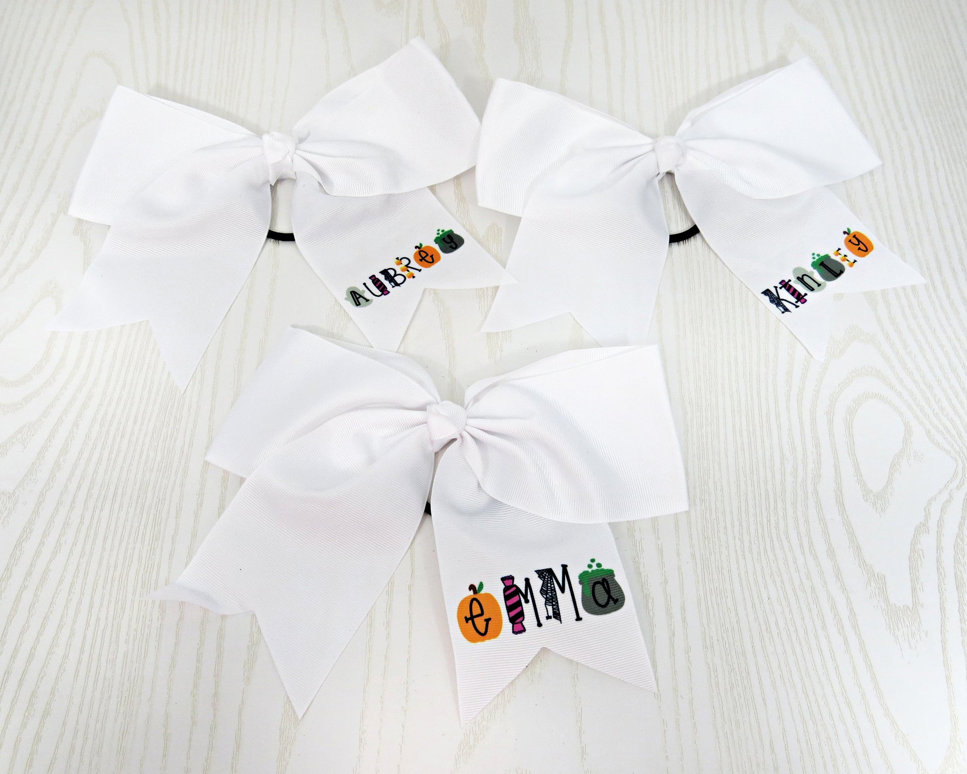 Halloween Personalized Hair Bow for Girls - Boo Hair Tie Accessory- Custom White Preppy Bow Trick or Treat - Cheer 8" Bow - Ribbon