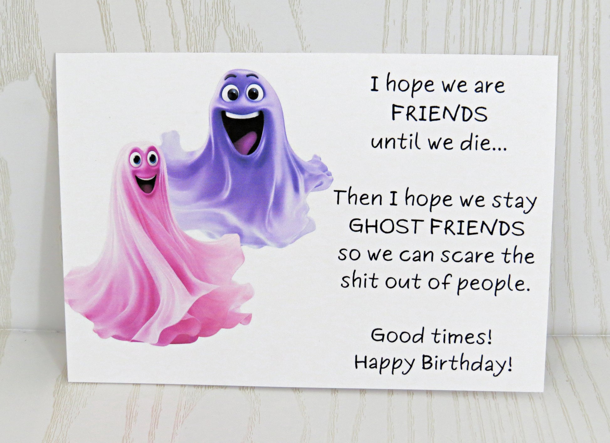 Handmade Kenzie's Boutique Happy Birthday Ghost Friends Card - Best Friends BFF Funny for Girl Celebration Gift - Mom to Be Unique Gift Card Holder Cash - Folded Card for Her - Humor Giggles Cutie Cute