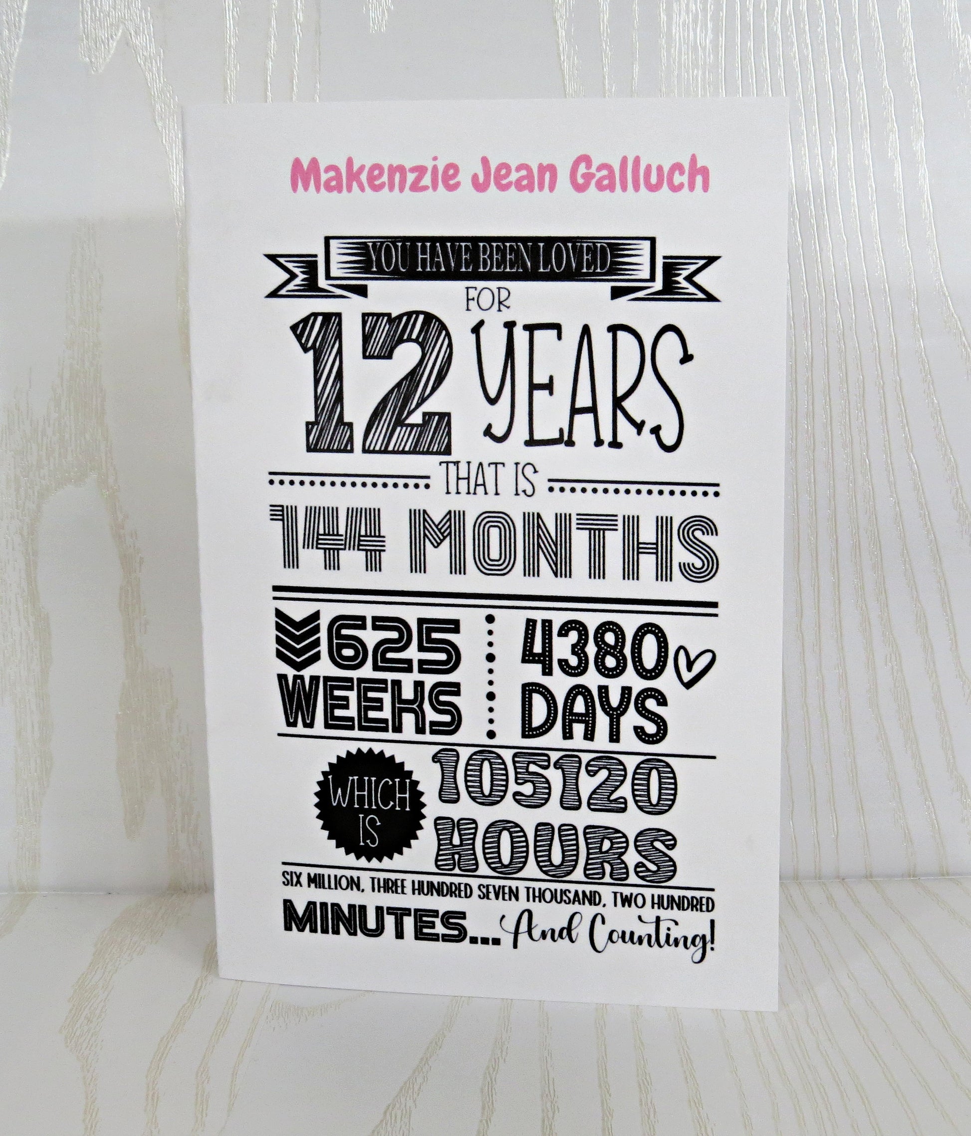 Handmade Kenzie's Boutique Happy Birthday Personalized Card - Years Months Weeks Days Hours Minutes and Counting Celebration Gift - Custom Folded Card for Her Him