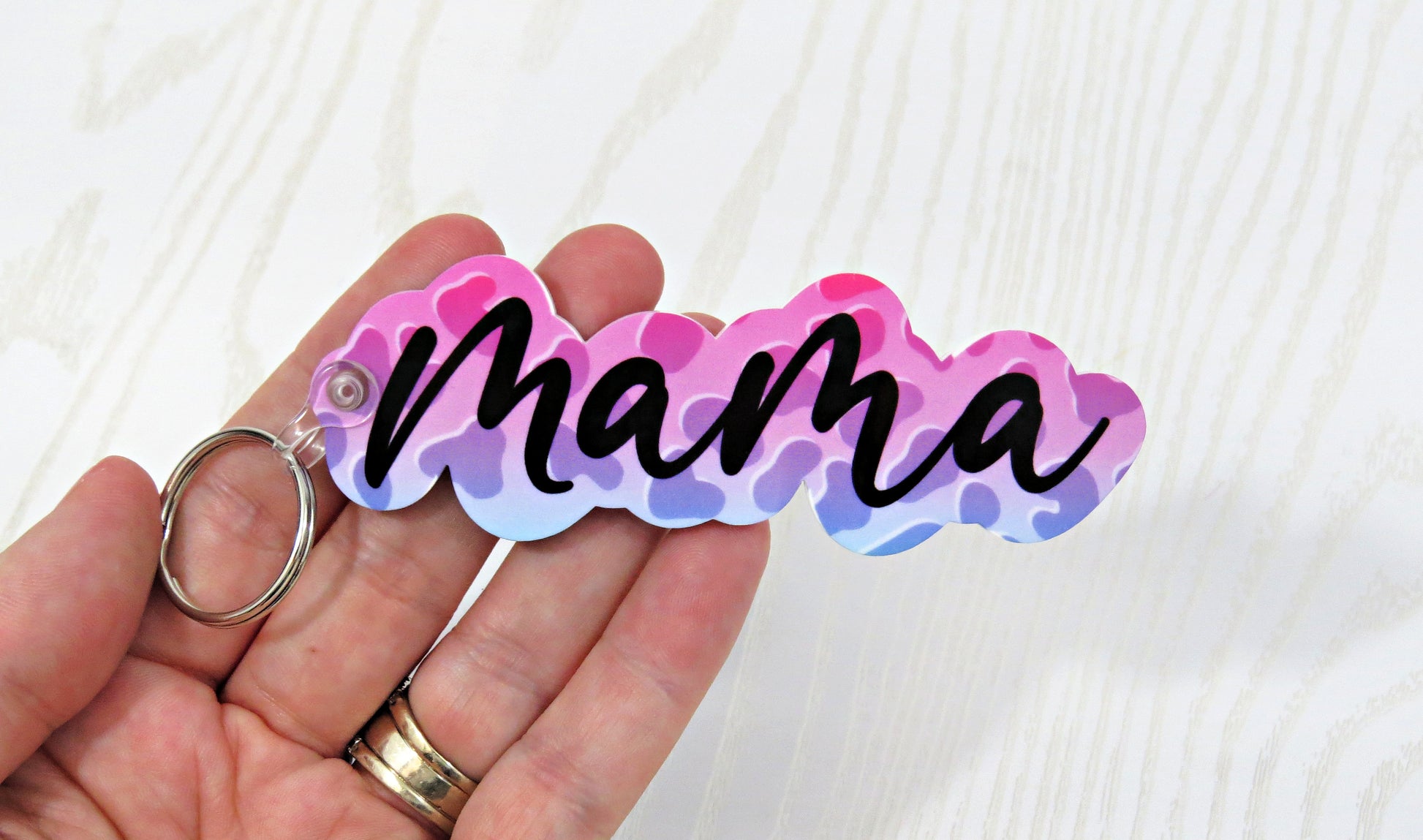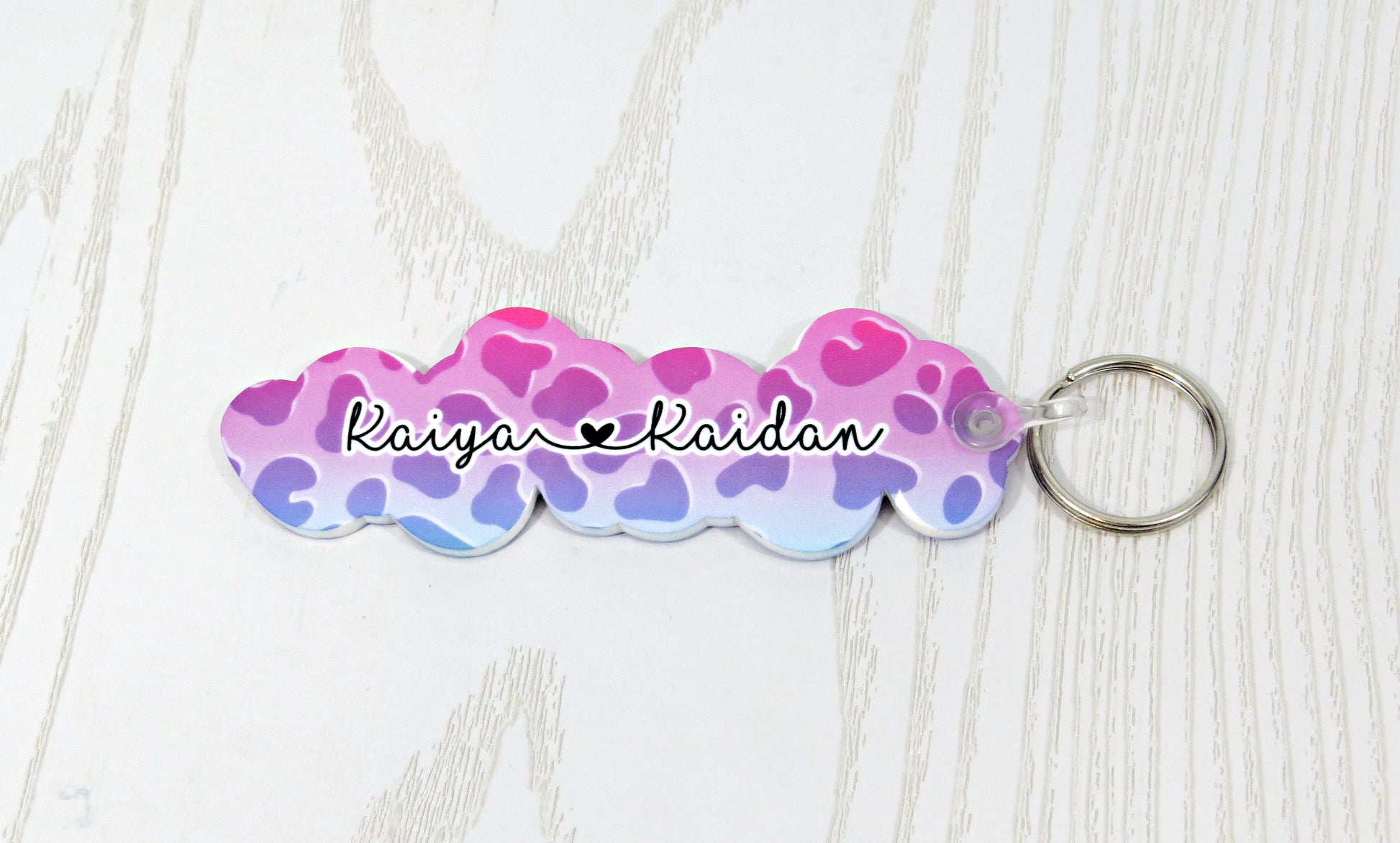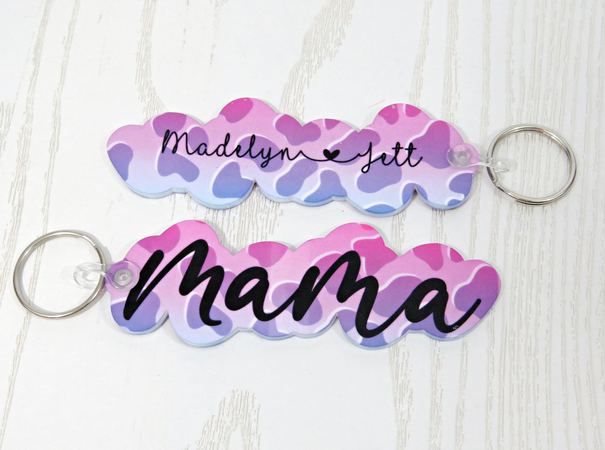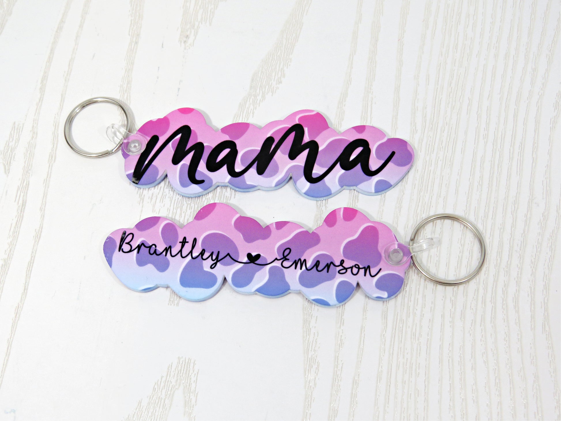 These Double Sided Mom keychain are great for gift giving! A super cute touch to add to her Keychain!!! Back Side can come with just the Cheetah background or you can add Kiddos names like shown in the picture.