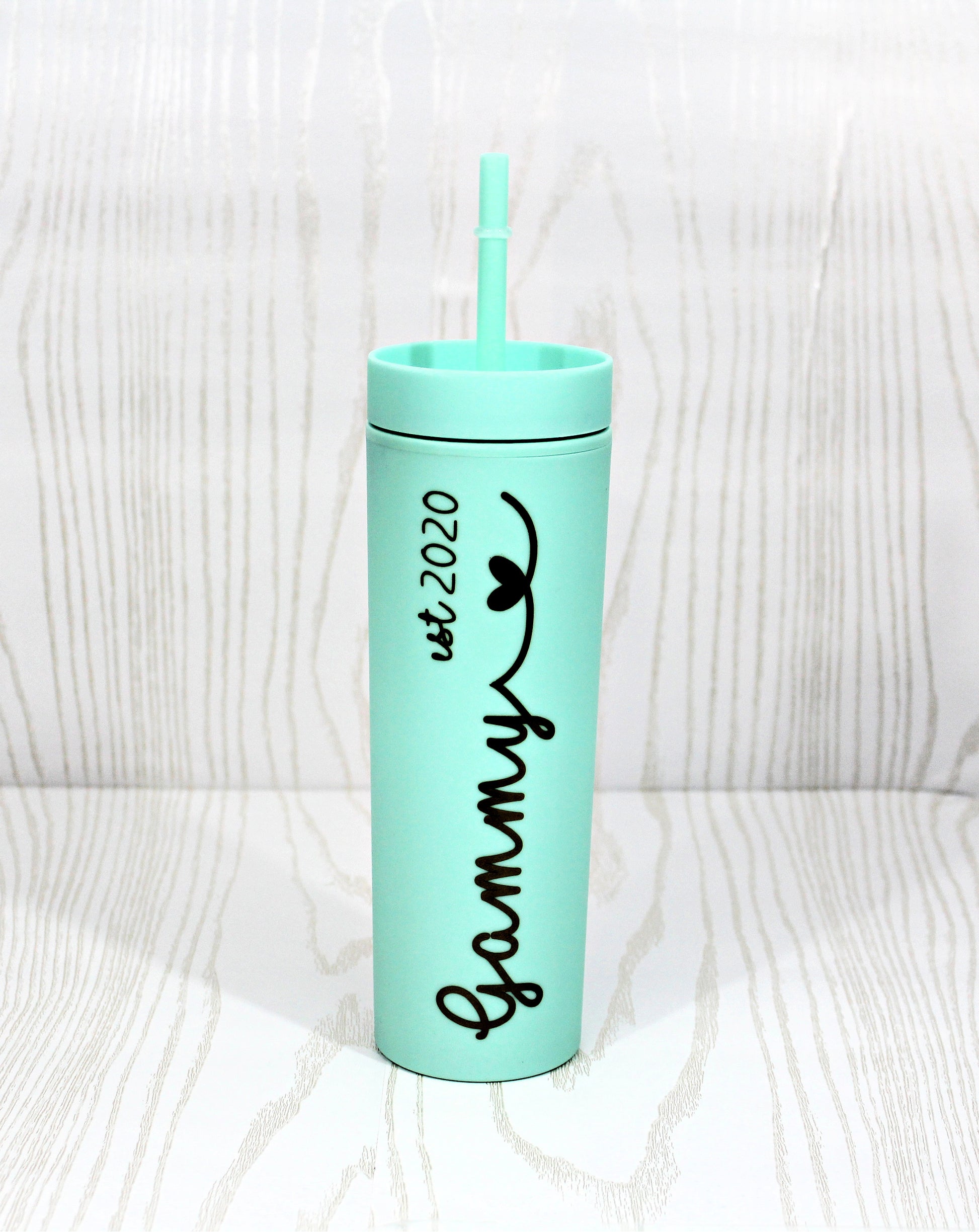 Handmade item, Made to order :) The Tumbler is made of 100% BPA-free high-grade acrylic material. Tumblers available in many different colors and comes with your choice of vinyl color too! Product dimensions are 8-1/2” in height with a base diameter of 2-1/2.”. Customs are always welcome!