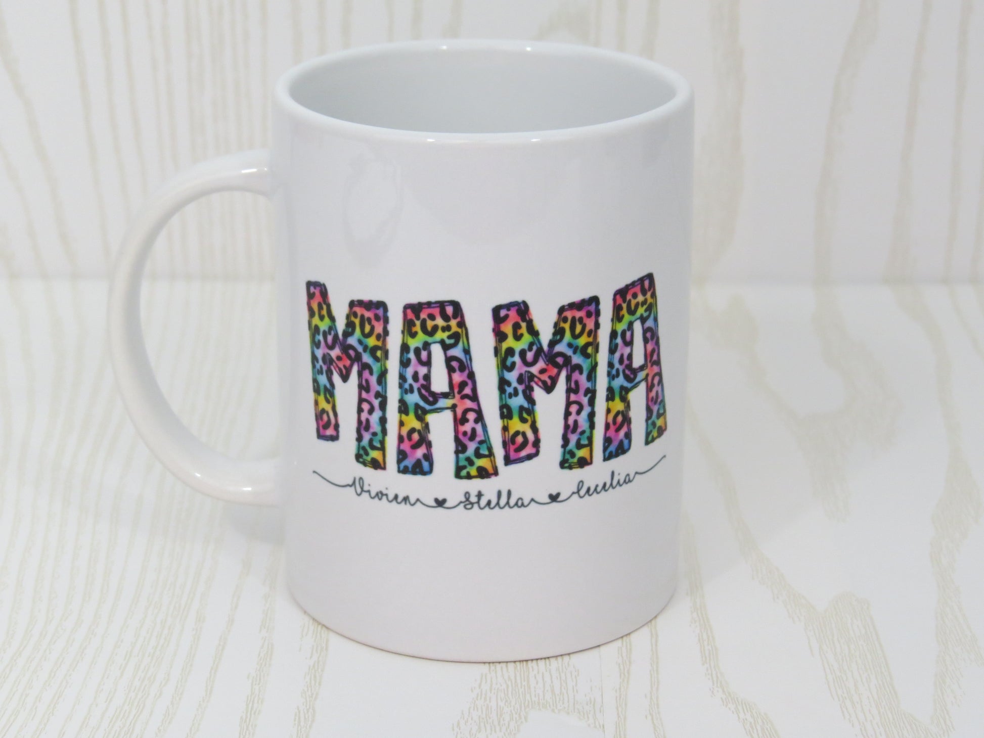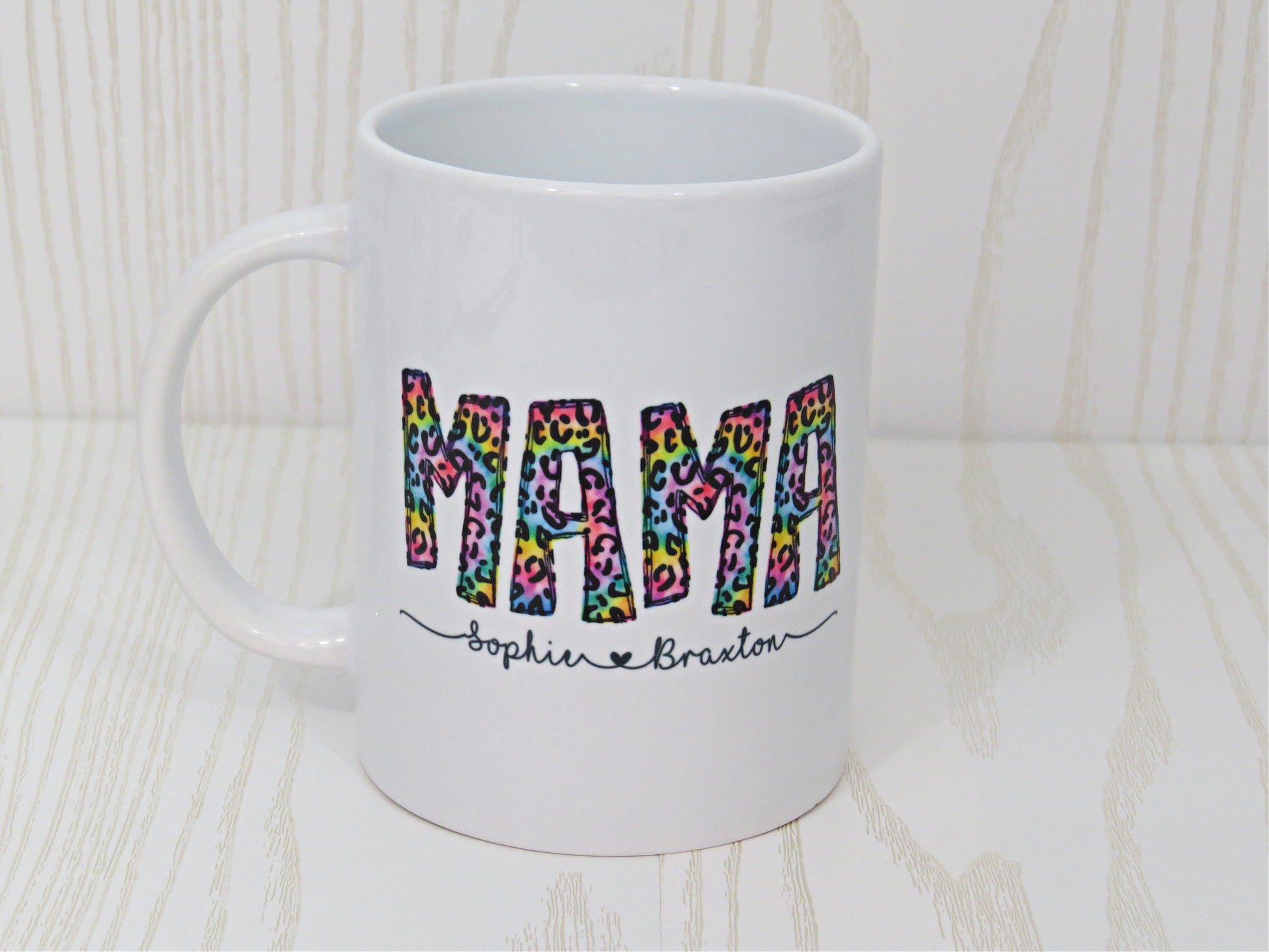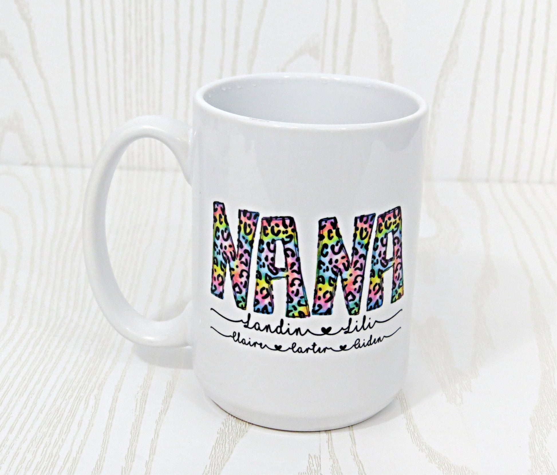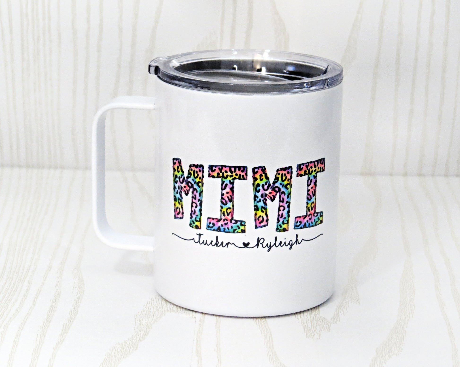 Tumbler comes with your choice of "Mom" name (such as Mom, Momma, Mimi, Grandma, ect) along with the kids names below <3