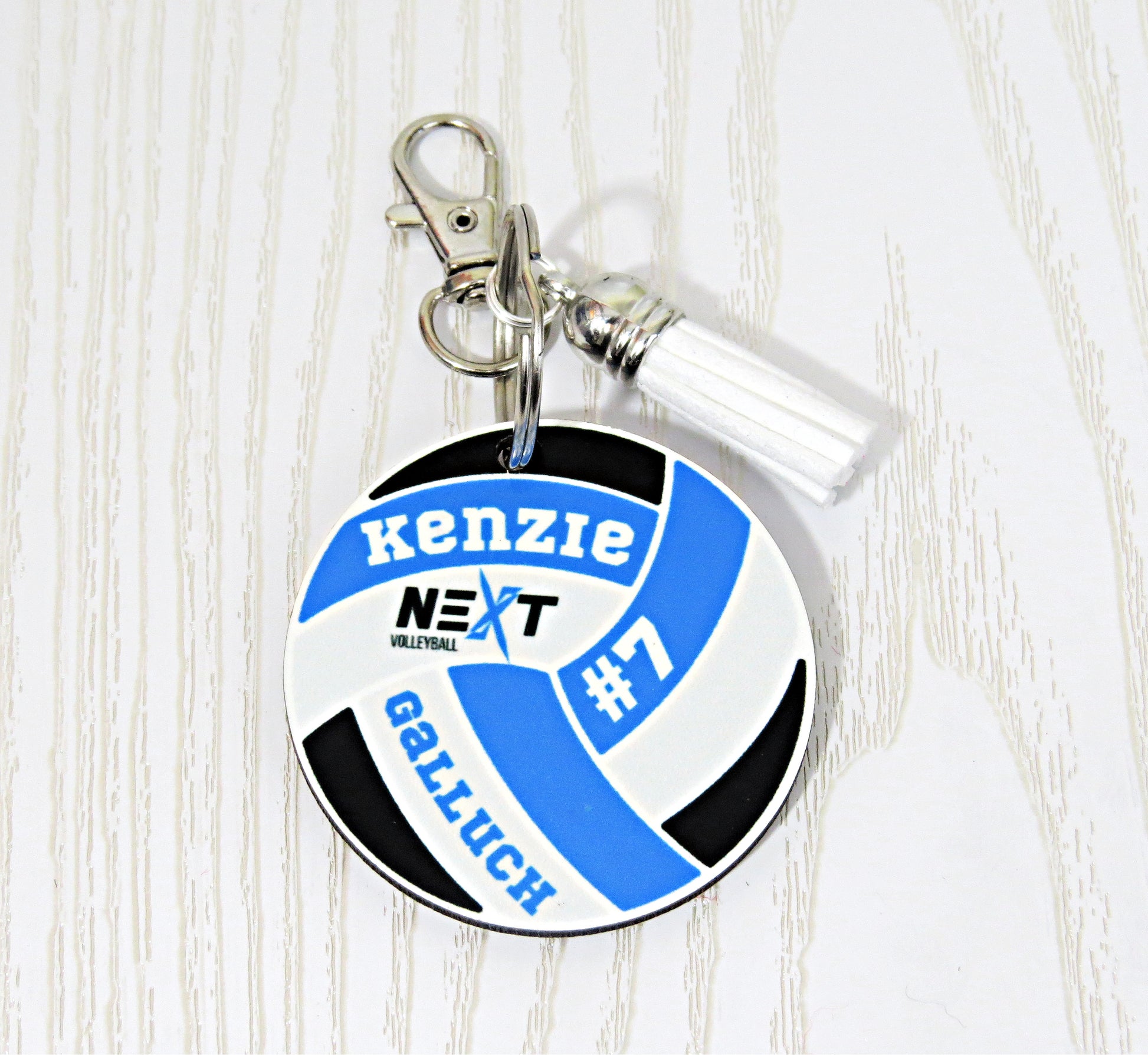 These Next Volleyball Keychains are perfect to show your love for your team! Personalized with first and last name along with their number! Great addition to their bags or for a keychain.