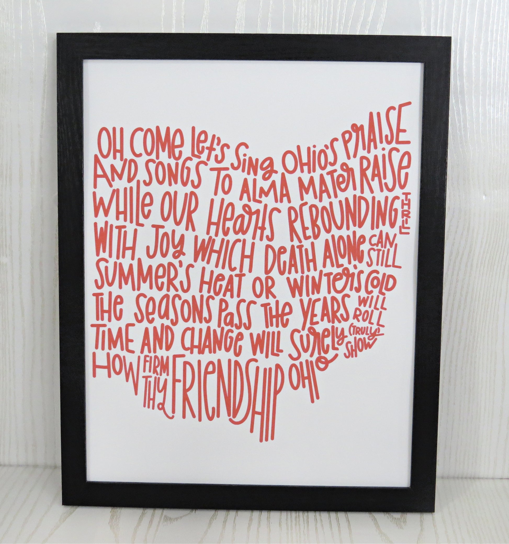Option A: 11x14 Frame without Mat: 11x14 frame showcases a larger print of the beloved Ohio song lyrics