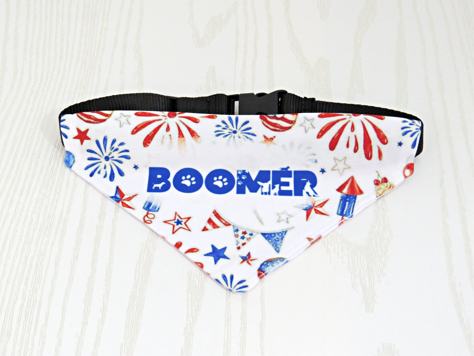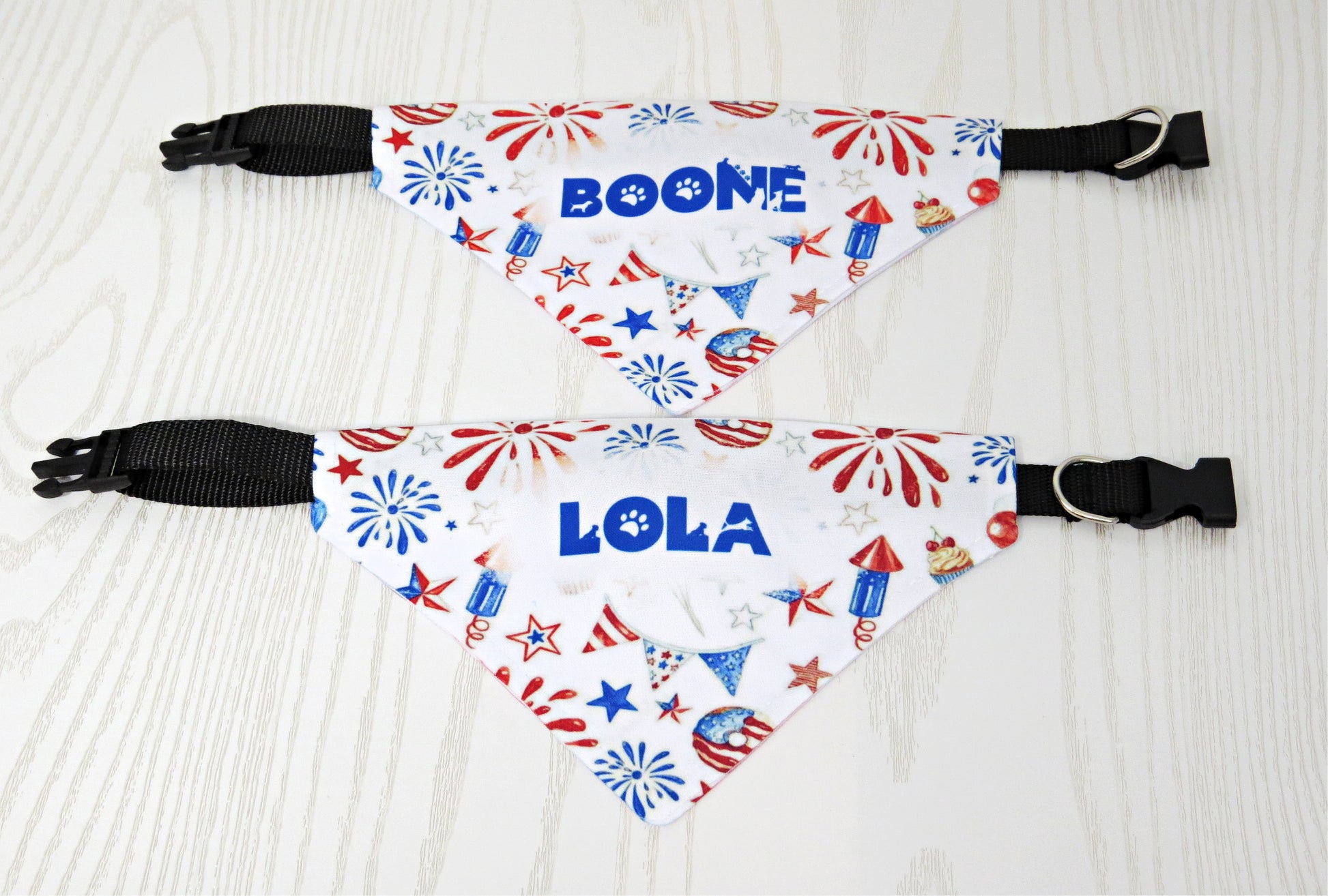 Patriotic Dog Bandana - Dog Scarf - With Collar - Birthday - Memorial - Washable - Adjustable - 4th