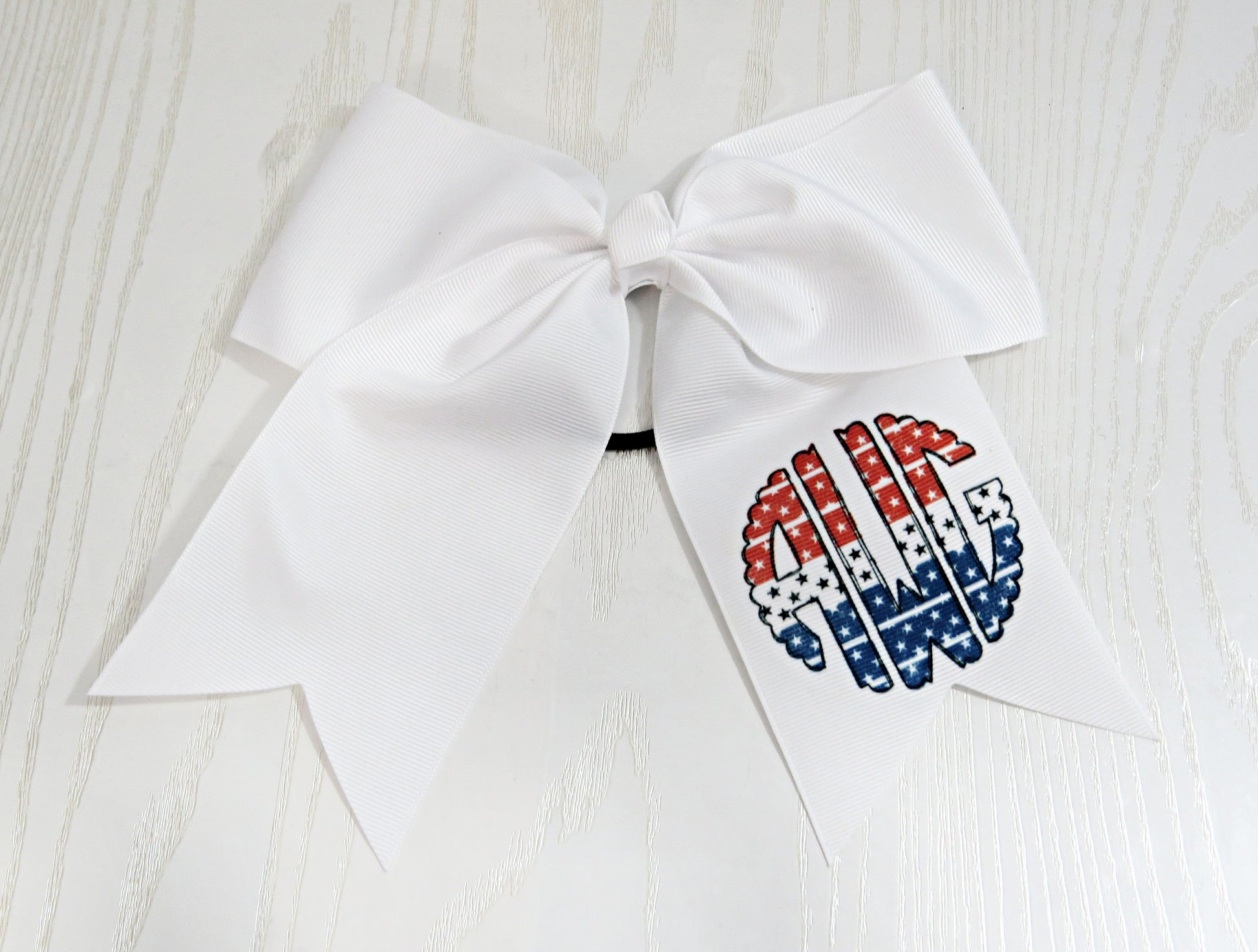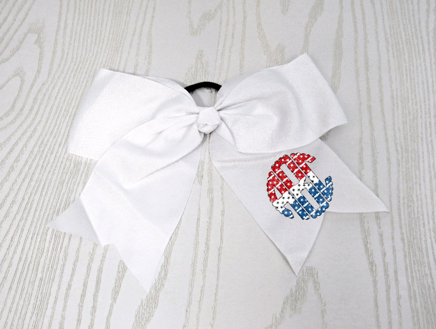 Patriotic Personalized Hair Bow for Girls - July 4th Hair Tie Accessory- Memorial Day Custom White Preppy Bow - Cheer 8" Bow - Ribbon