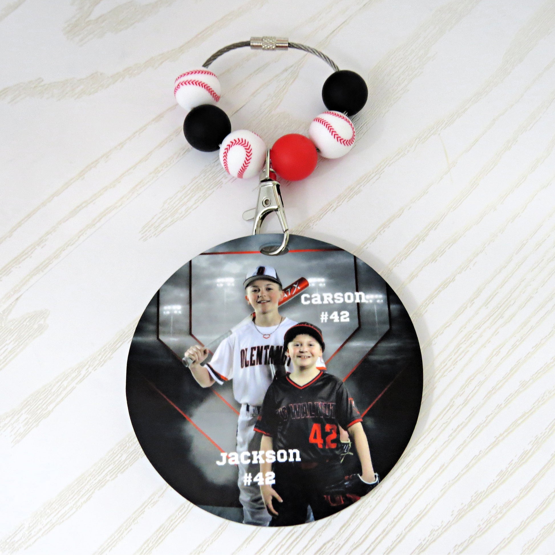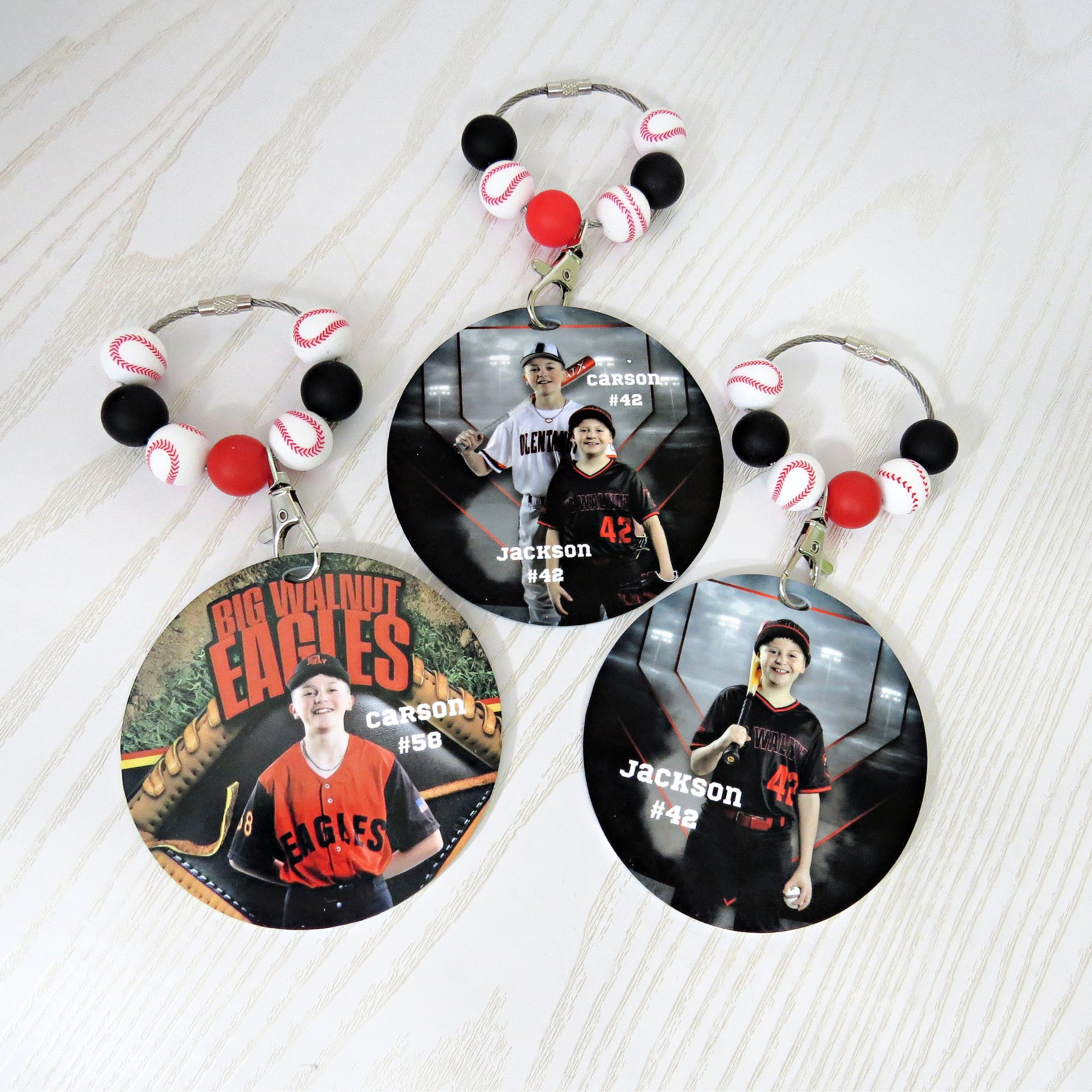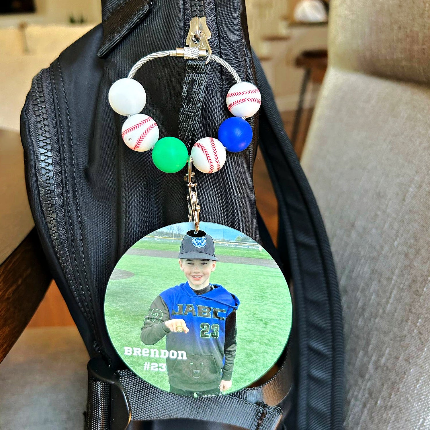Personalized Baseball Mom Bag Tag with Name for Purse Backpack Sports Bag - Custom Kids Picture Acrylic ID