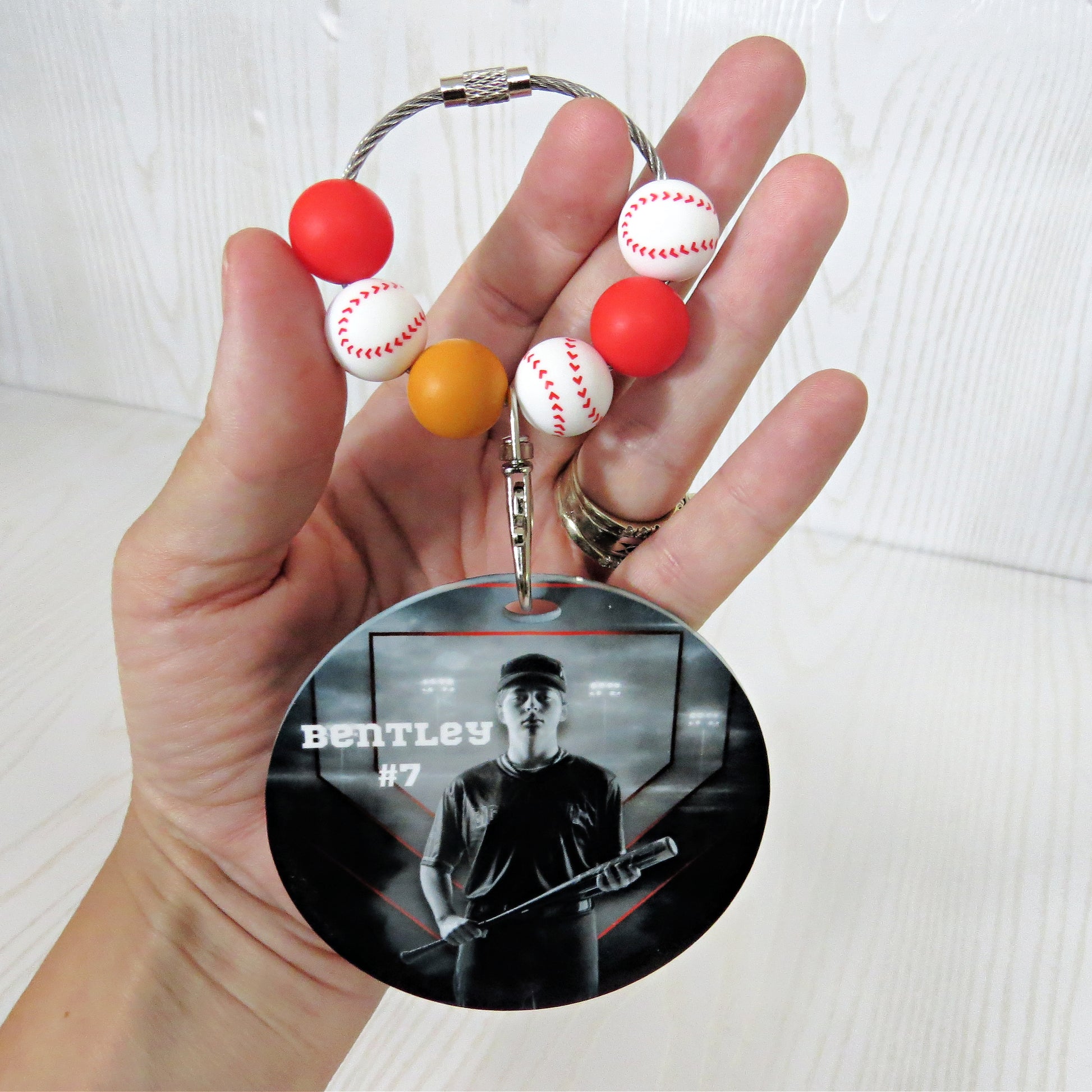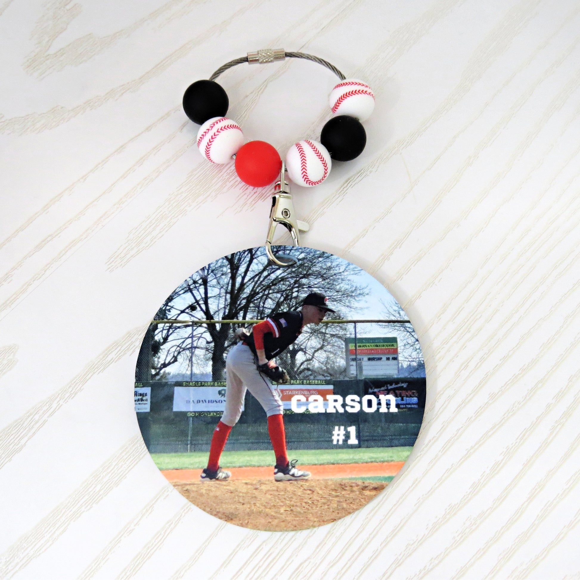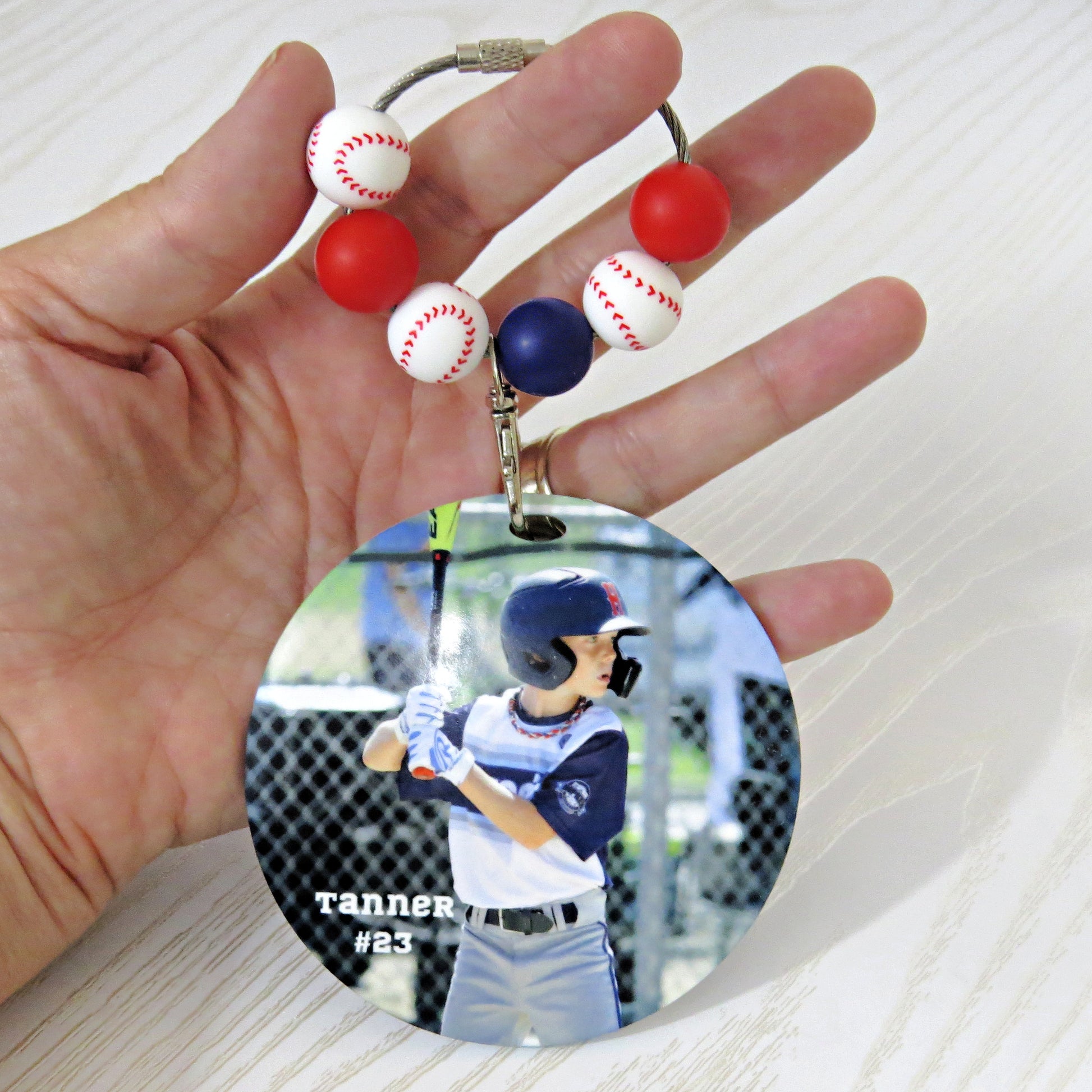 Personalized Baseball Mom Bag Tag with Name for Purse Backpack Sports Bag - Custom Kids Picture Acrylic ID