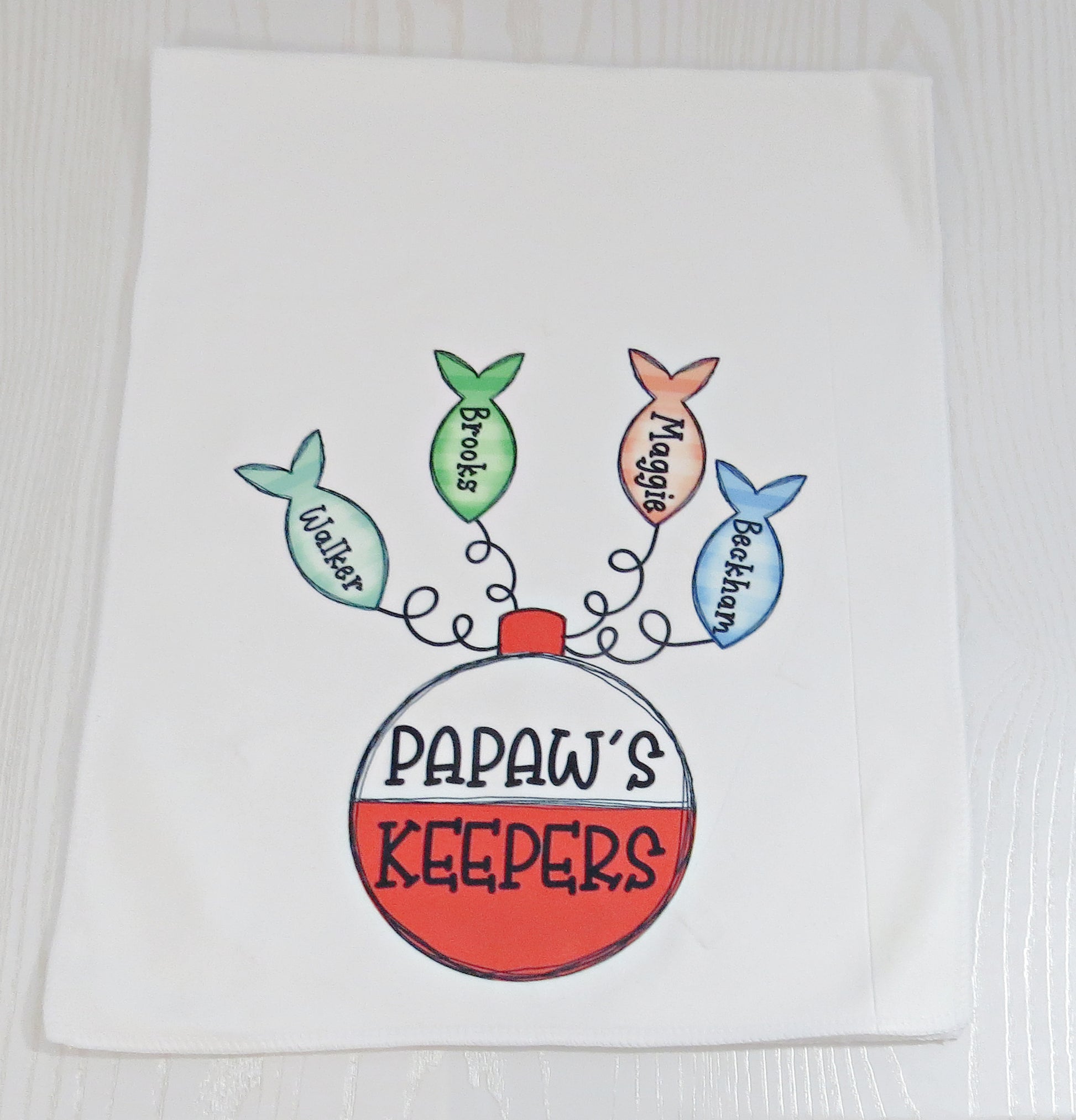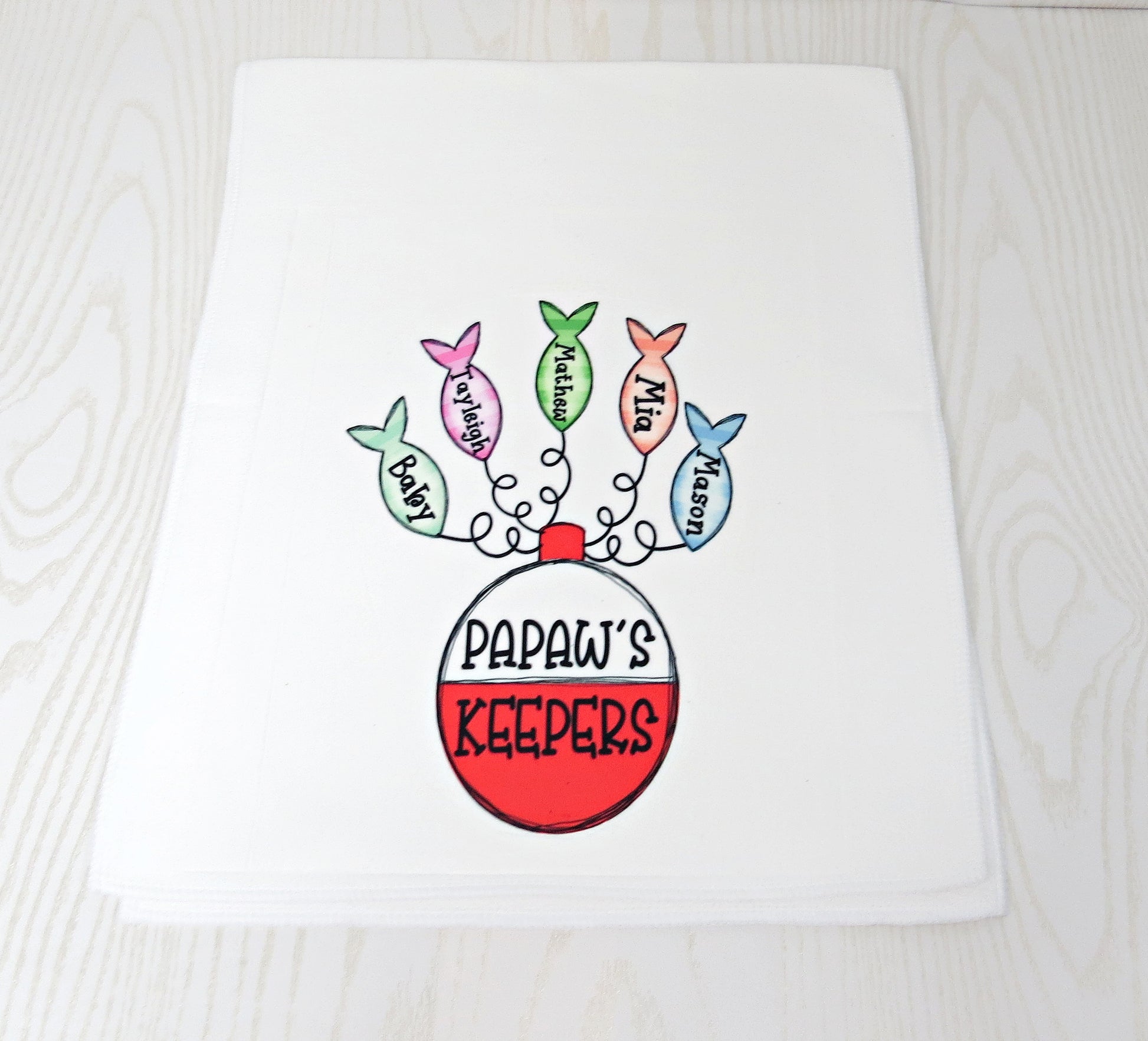 This Fishing Towel is the perfect gift for that Dad / Grandpa in your life! Comes personalized the "Dad" Type name of your choice and the Kiddos names!