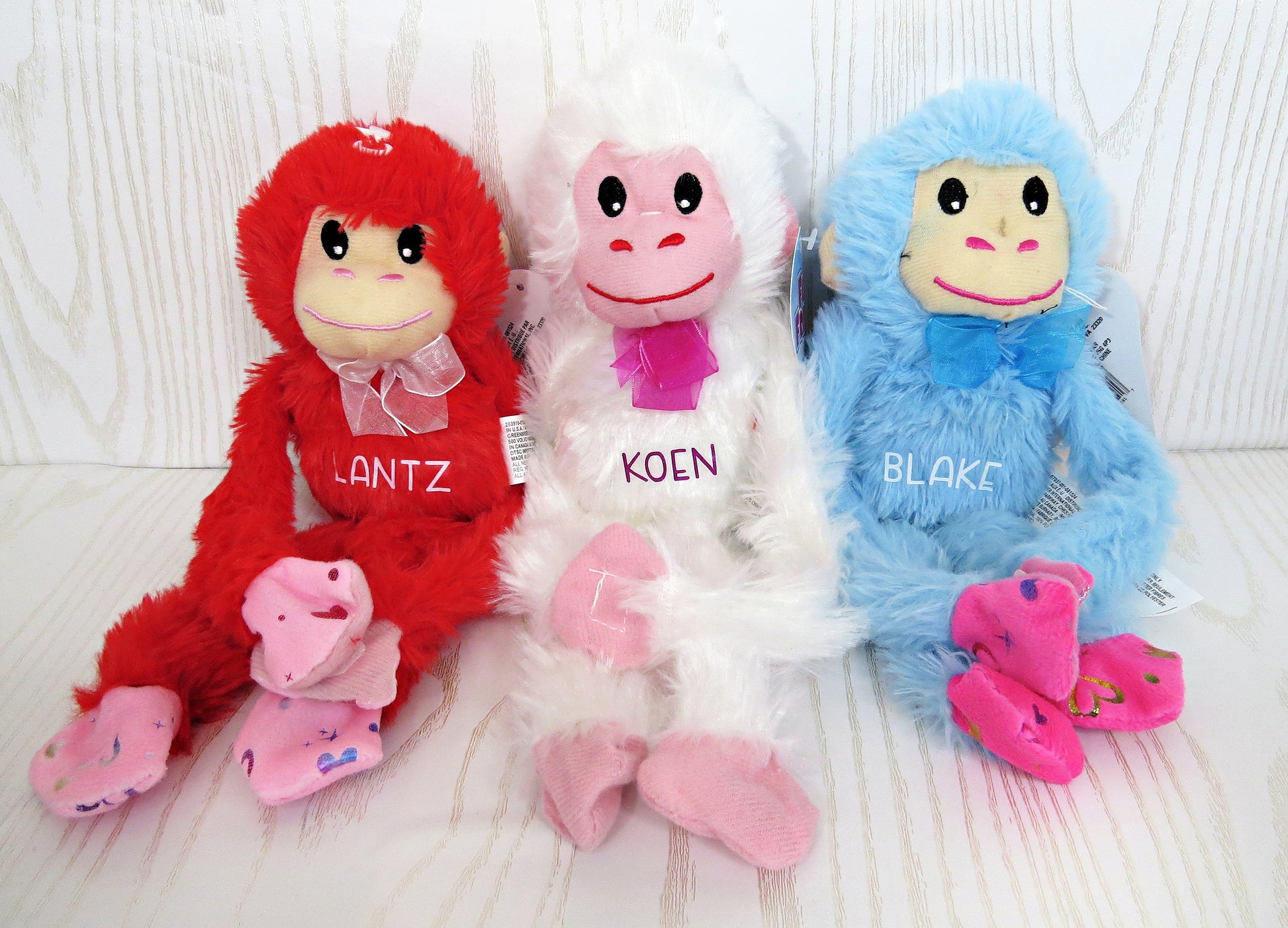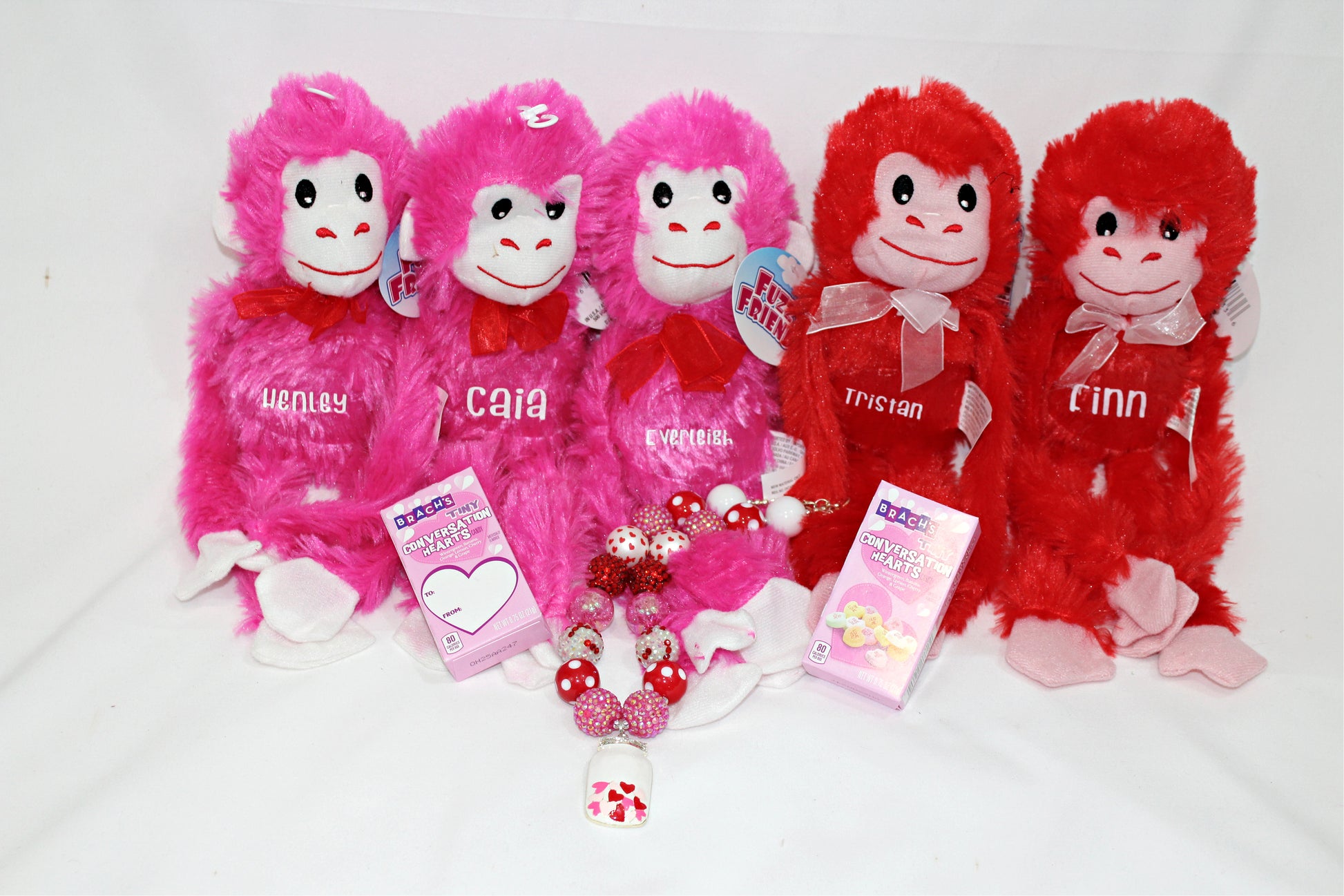 Kenzie's Boutique Handmade Personalized Valentines Day Hanging Monkey Plush Gift for Kids - Custom Stuffed Animal with Name – Hanging Lovey Velcro Hands – Boys Girls – Décor Classroom Exchange
