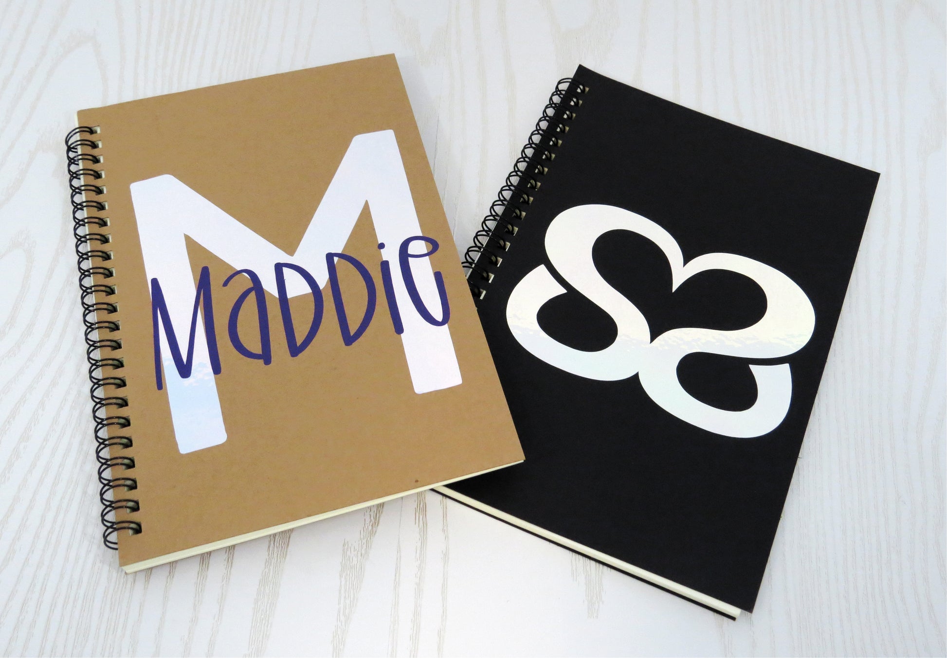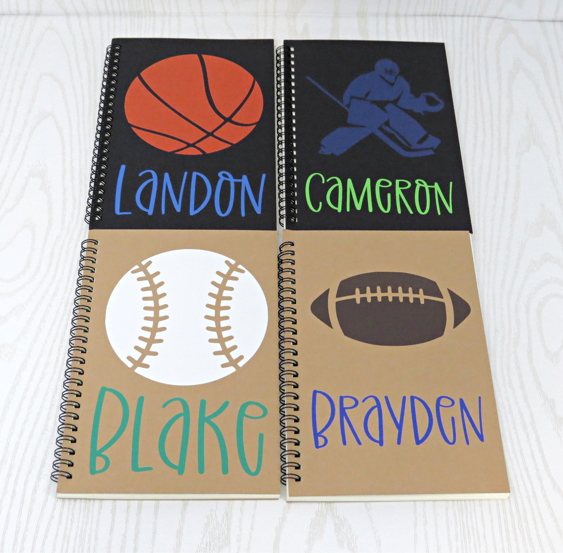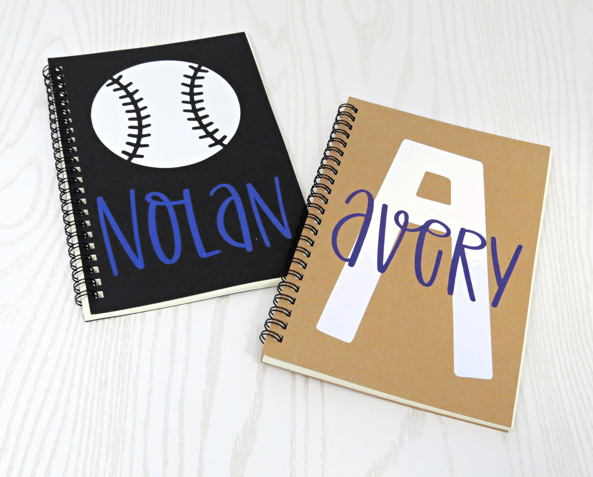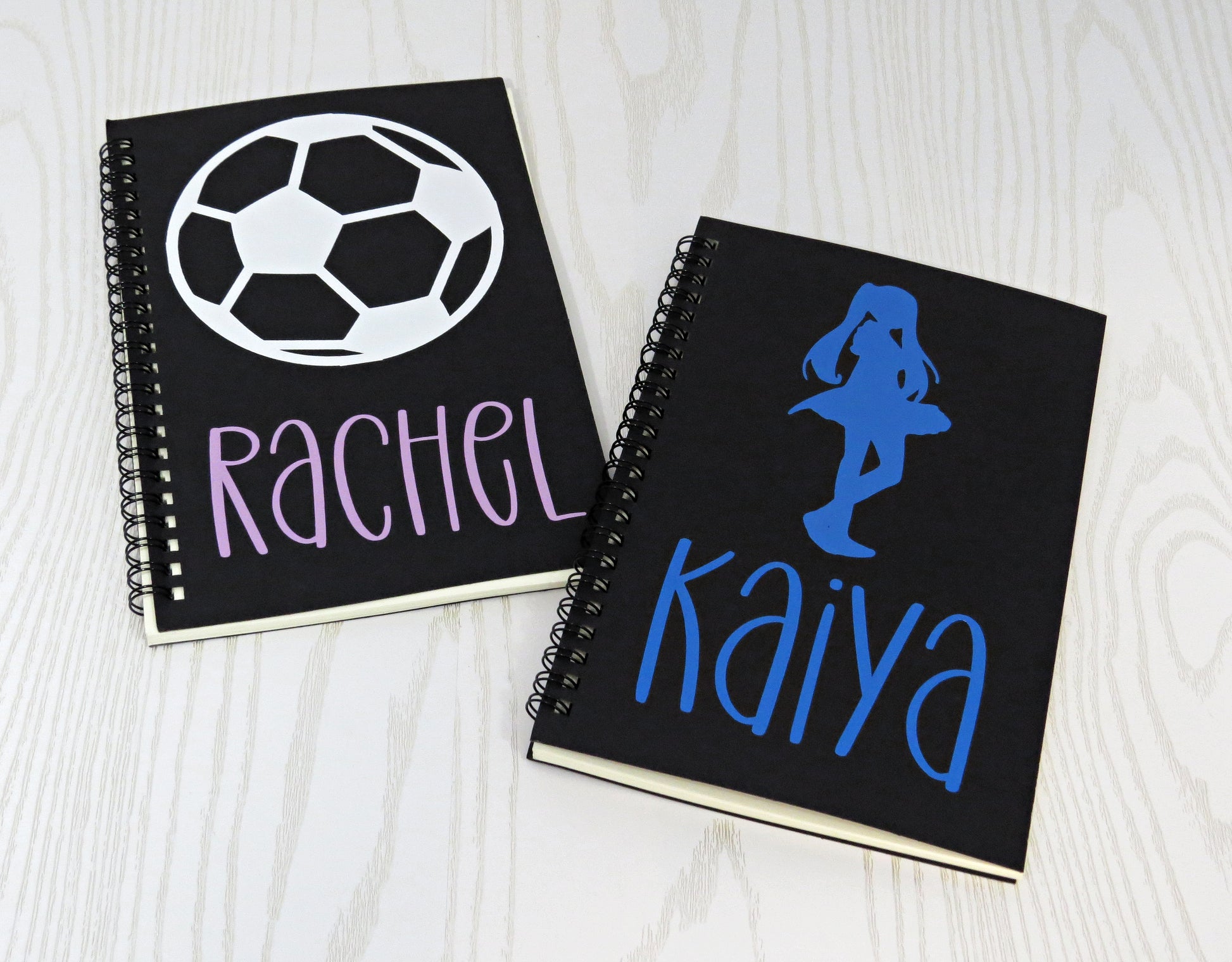 Notebooks are 8.3x5.5 Inches, 100 pages (50 Sheets) of unruled sheets! Typically comes with a Name and Large Initial with your choice of Vinyl colors. I can also do logos (like pictured) as long as they are not too complex...feel free to message before purchasing with questions!