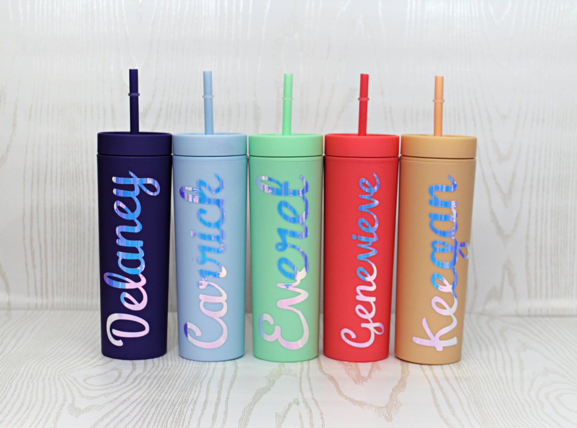 These Personalized Skinny Tumblers are the perfect gift for just about anyone! Perfect for Weddings, Birthday, Baby Showers, Vacations or just a thoughtful gift for that special person! These Custom Tumblers make the perfect companion for Water and so much more!