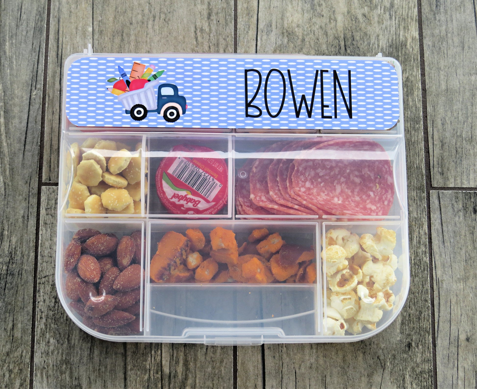 Personalized Snack Box - Snacklebox Custom Case - Hard Box with Snap-Tight Lid - Vacation Food Saver - Car Ride Snack Holder