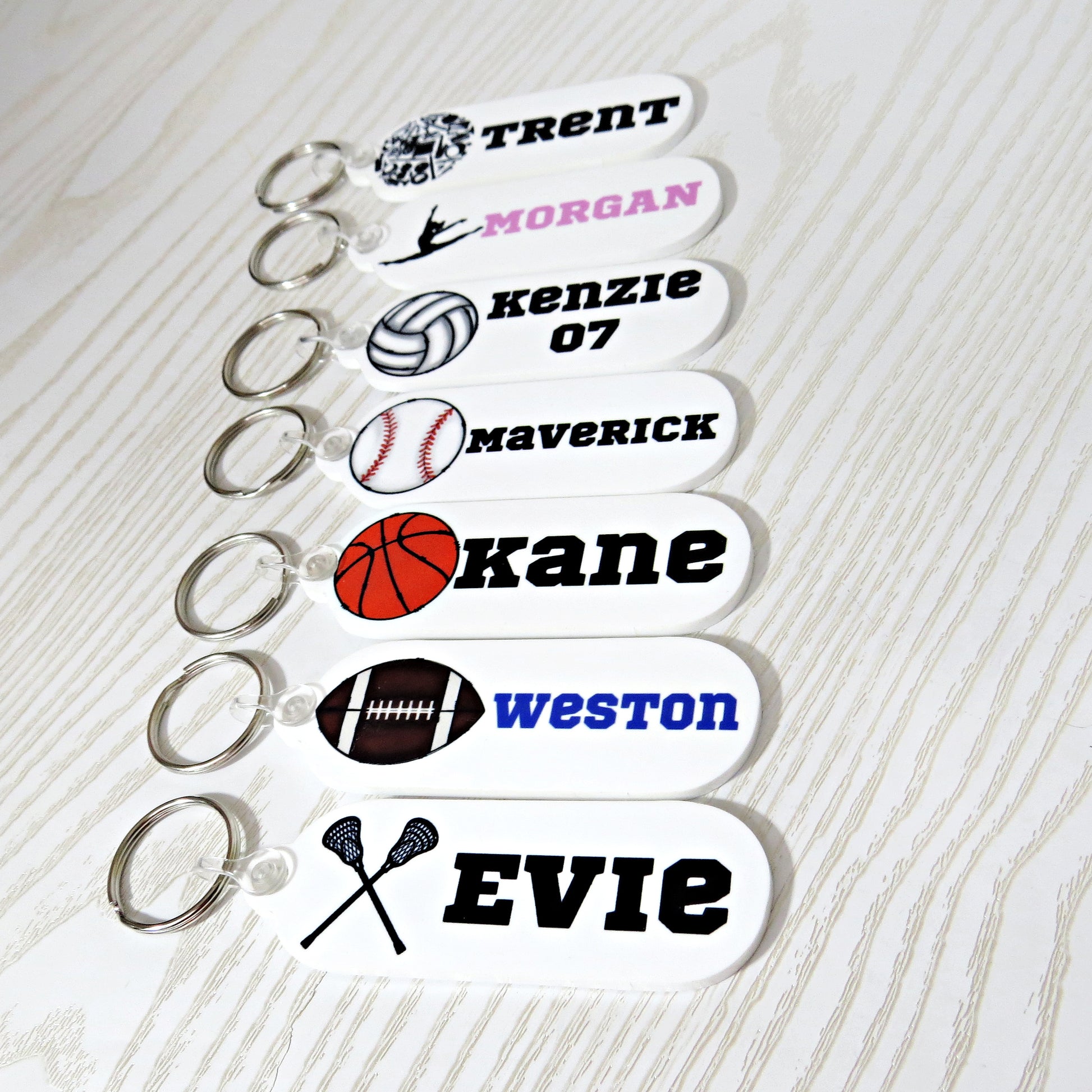 - CUSTOMIZED FOR YOUR PLAYER – Each keychain is personalized with your child’s name and features their favorite sport — football, basketball, baseball, volleyball, cheer, lacrosse & more as we keep adding on to our choices.