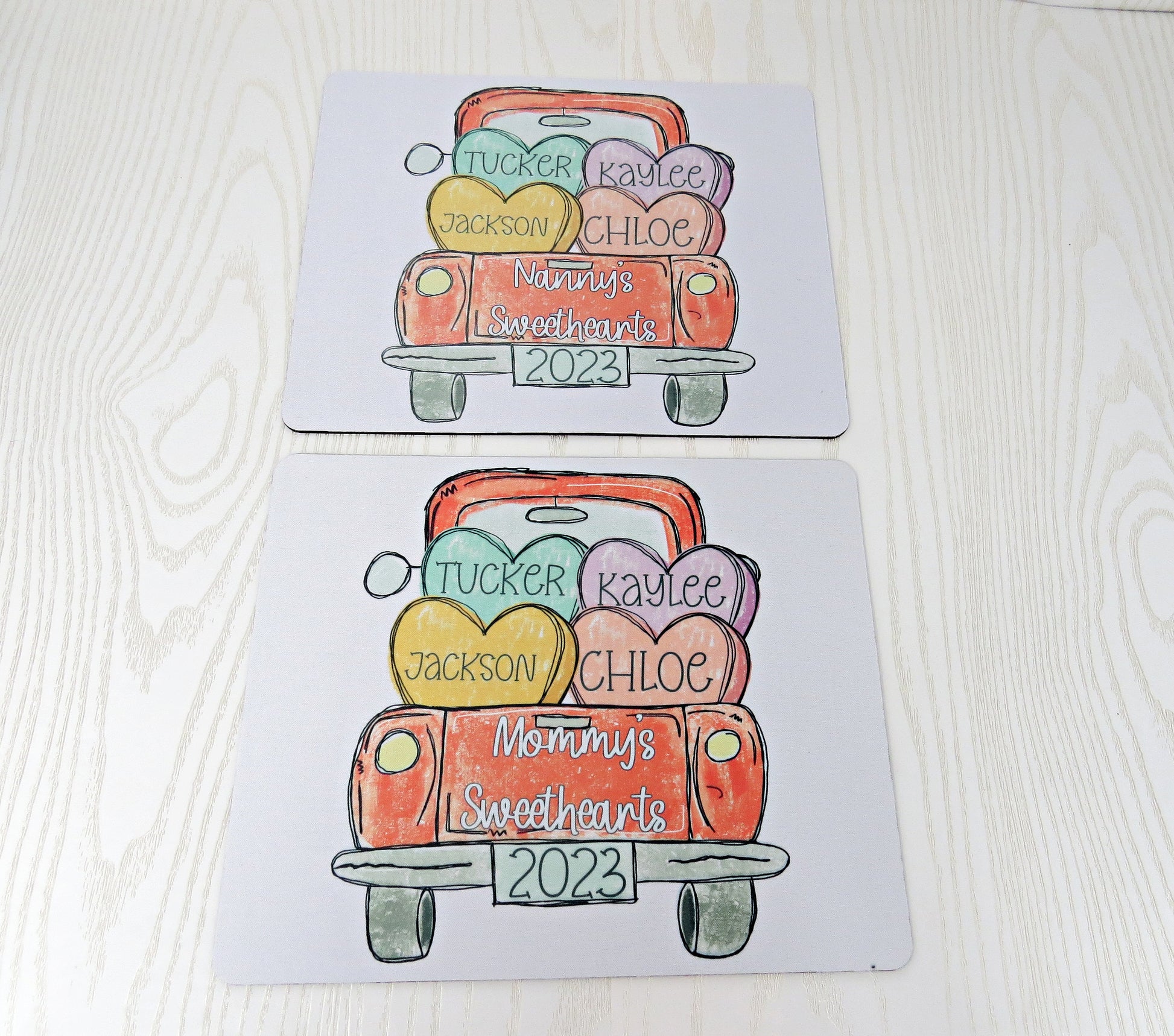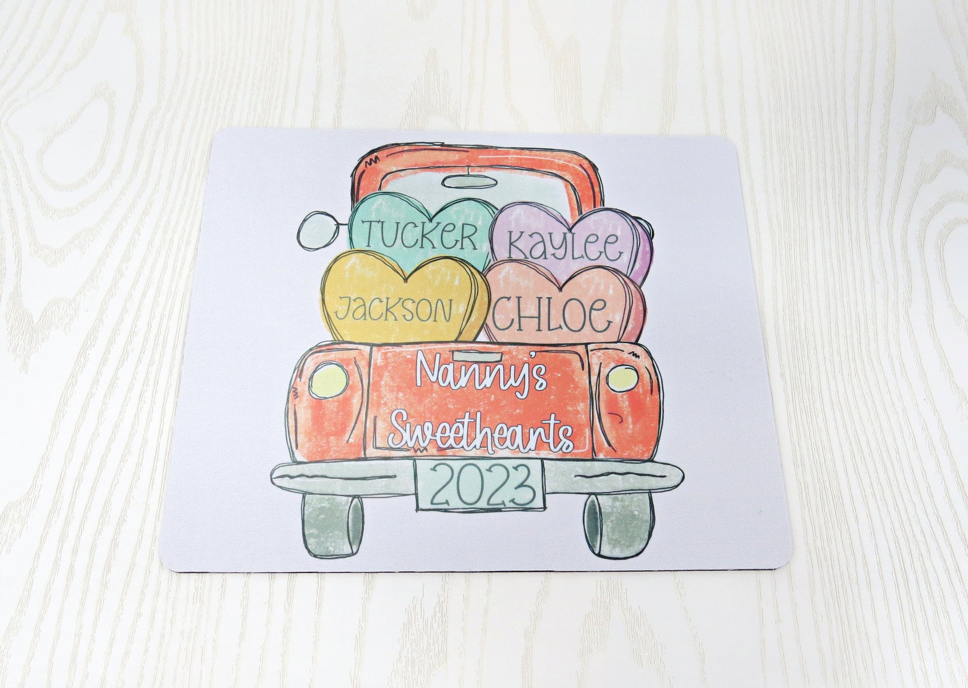 Personalized Truck Valentines Day Mouse Pad with Kids Names - Mothers Day Personalized Mom Gift - Gifts for Grandma