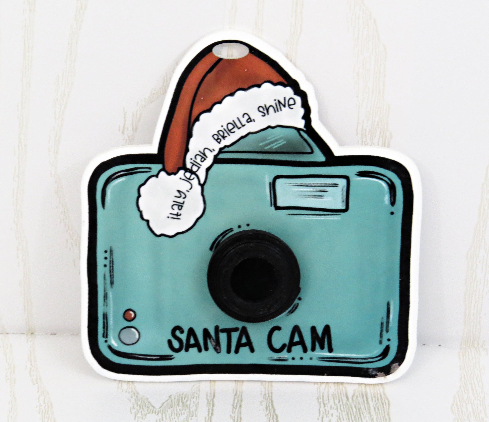 Create a little Christmas magic with this personalized Santa Cam ornament! Designed to look like a festive camera with your child’s name on the Santa hat, this fun ornament adds excitement and encourages good behavior during the holiday season. Lightweight, durable, and perfect for the Christmas tree or as a playful gift. A cute tradition your family will look forward to each year!