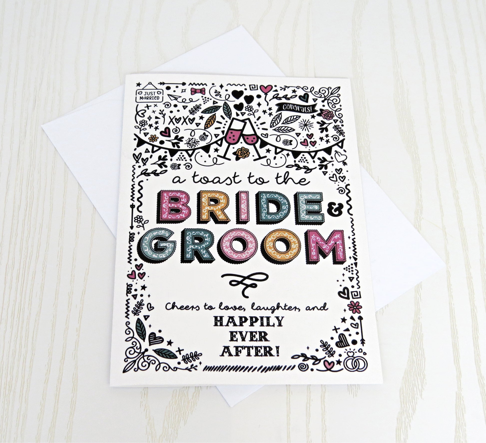 Wedding Card - A Toast to the Bride & Groom - Congratulations Party Celebration - Bride to Be Unique Gift Card Holder Cash - Folded Card for Her