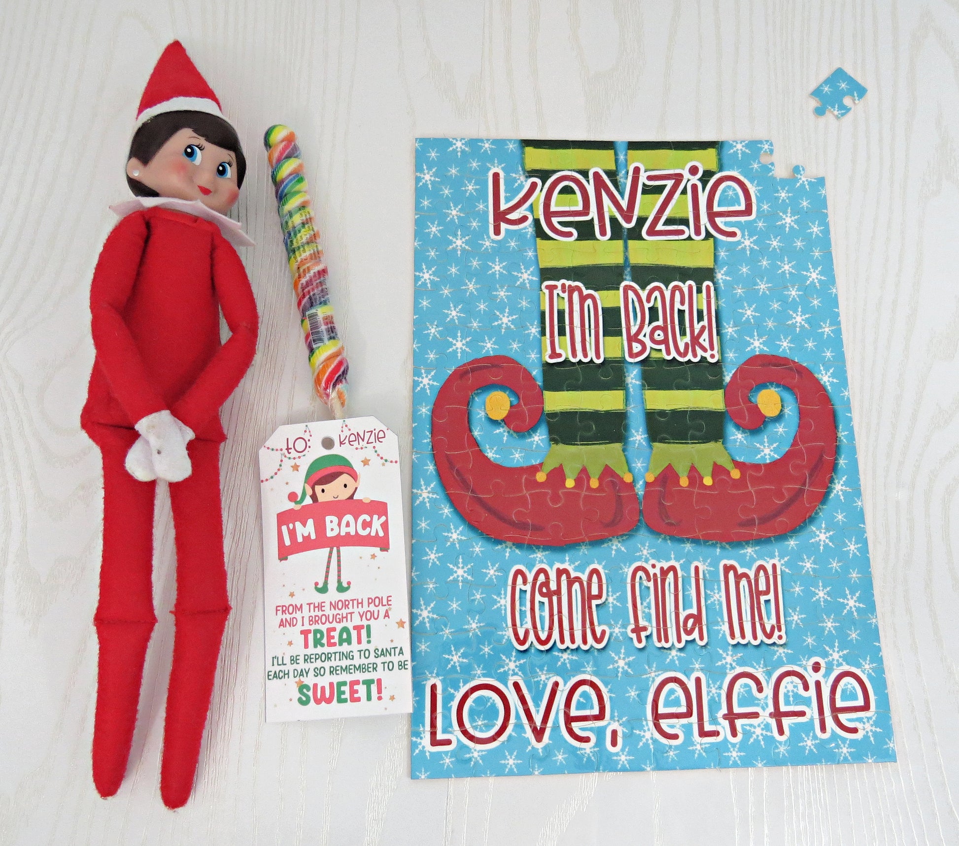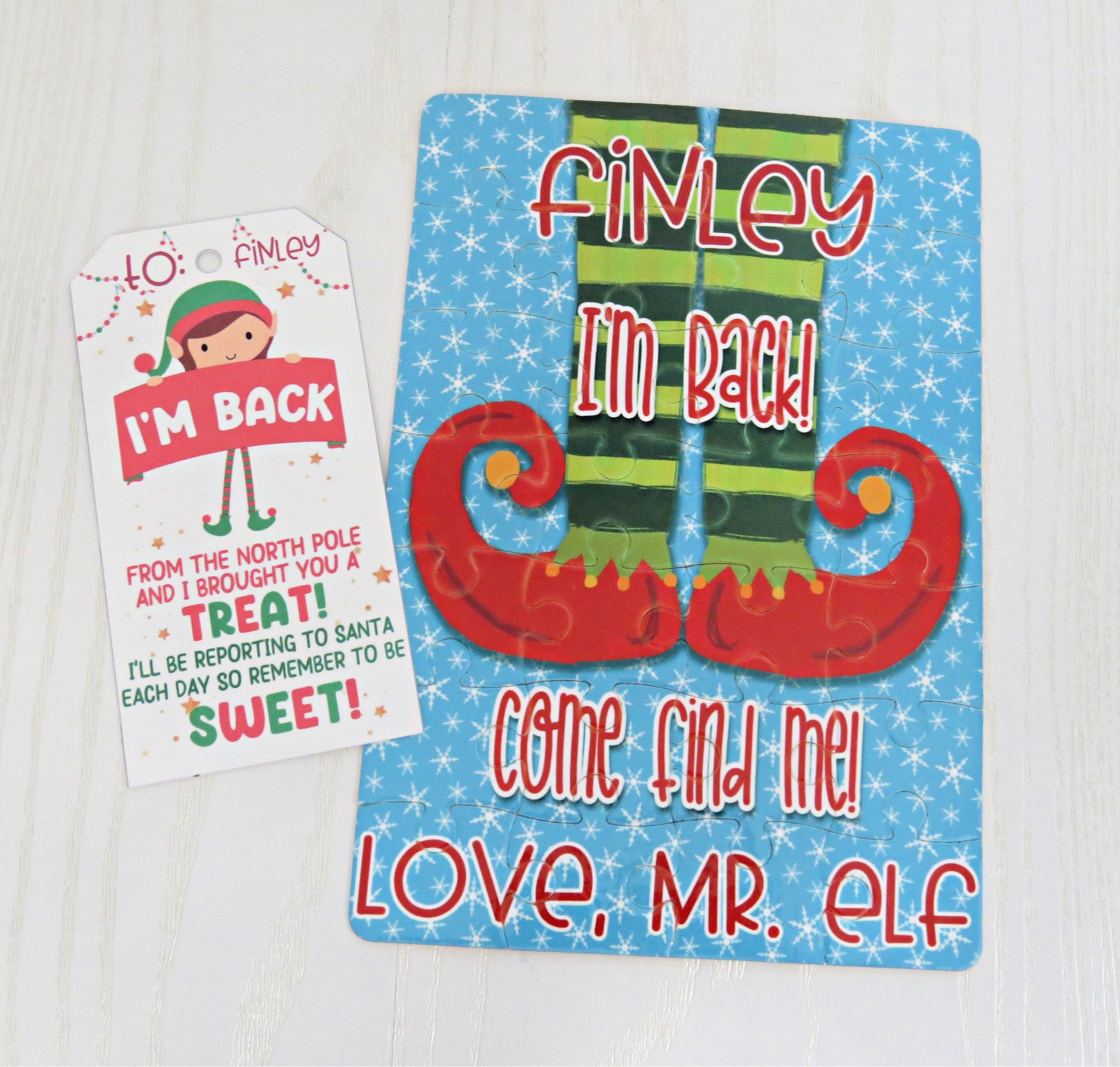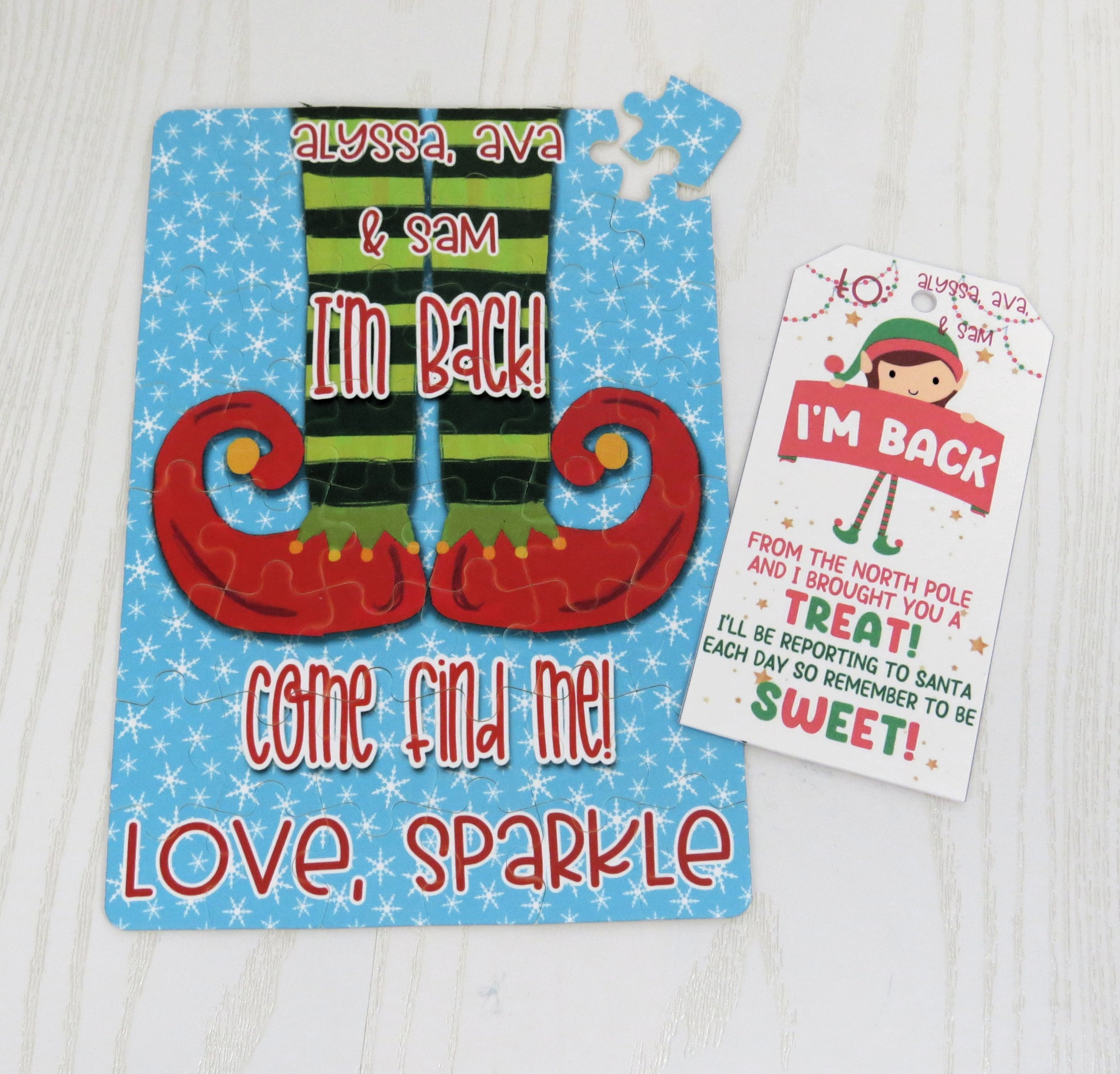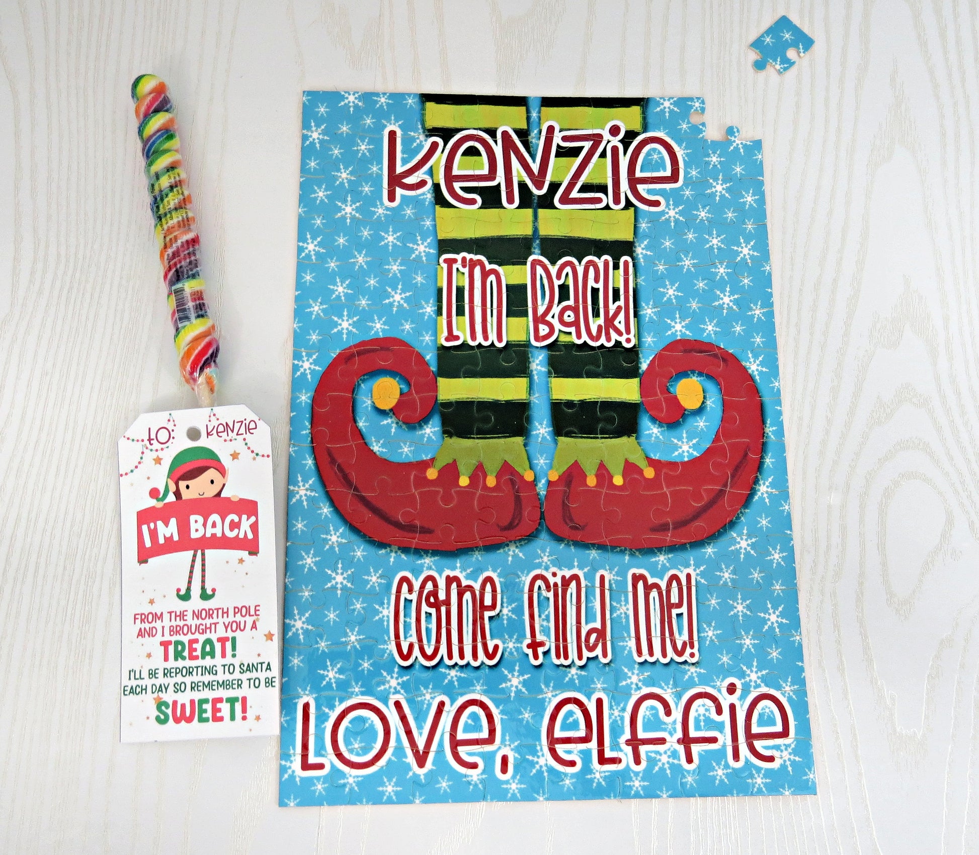 Welcome Back Elf Christmas Personalized Puzzle & Matching Gift Tag - I'm Back Custom Puzzle - Cute Holiday Gift - Personalized Puzzle Kids - Name Puzzle - 24 48 120 pieces