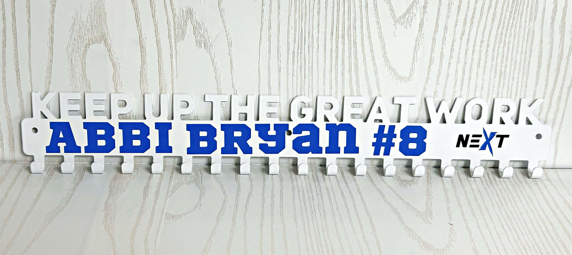 White Metal Medal Hanger Display for Sports Ribbons with Name - Decorative Trophy Holder Championship Winner Rack - Keep Up the Great Work - Wall Medals - Custom Text Tournament